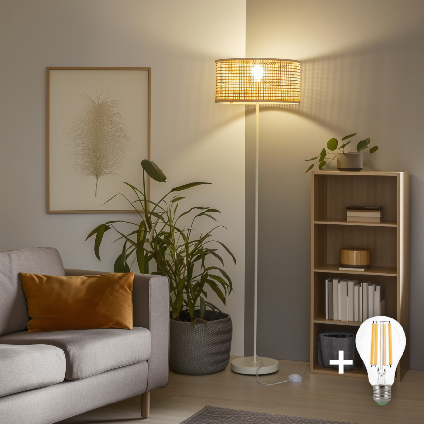 Brilagi - Lampadaire LED CERIA 1x E27, 40 W, 230 V, Ø 40 cm, bambou/blanc