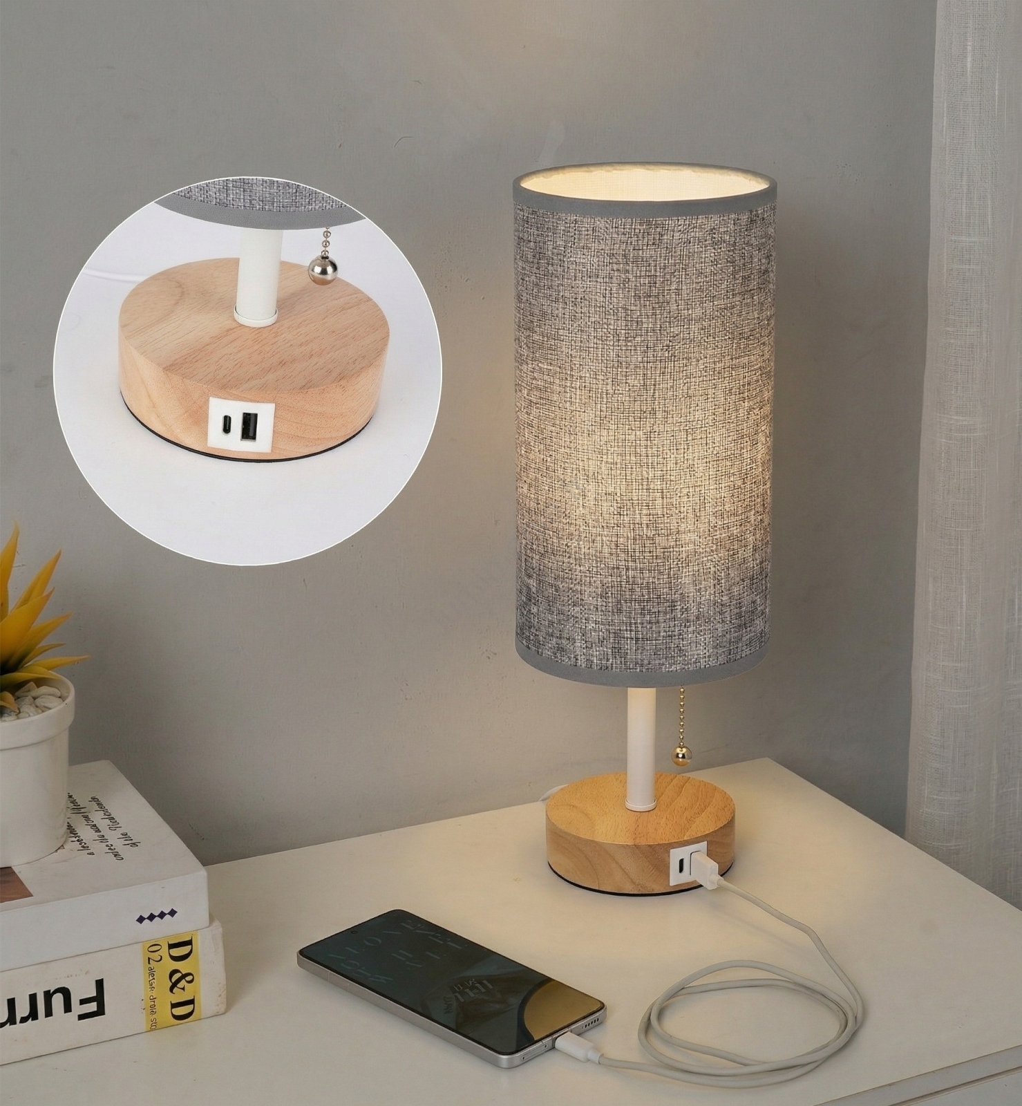 • Brilagi - Lampe de table avec port USB TABLON 1xE27/25W/230V chêne/blanc/gris
