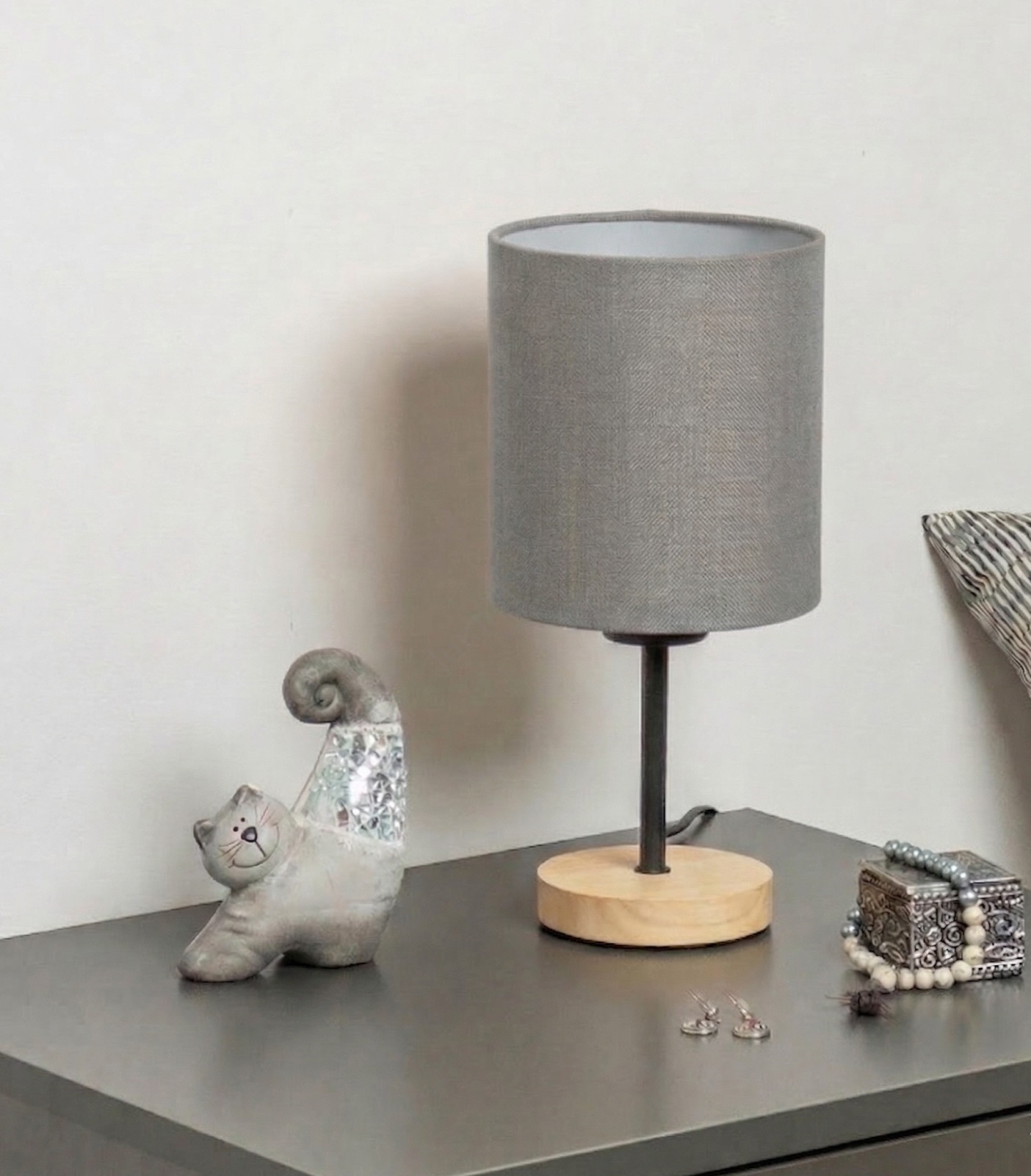 Brilagi - Lampe de table NUBILA WOOD 1xE27/25W/230V chêne/noir/gris clair caractérise un design agréable et fonctionnel.  Une ampoule à culot E27 convient pour ce luminaire. Ici, vous pouvez acheter d'autres ampoules à des prix avantageux. Vous aurez un ajout intéressant dans votre intérieur.