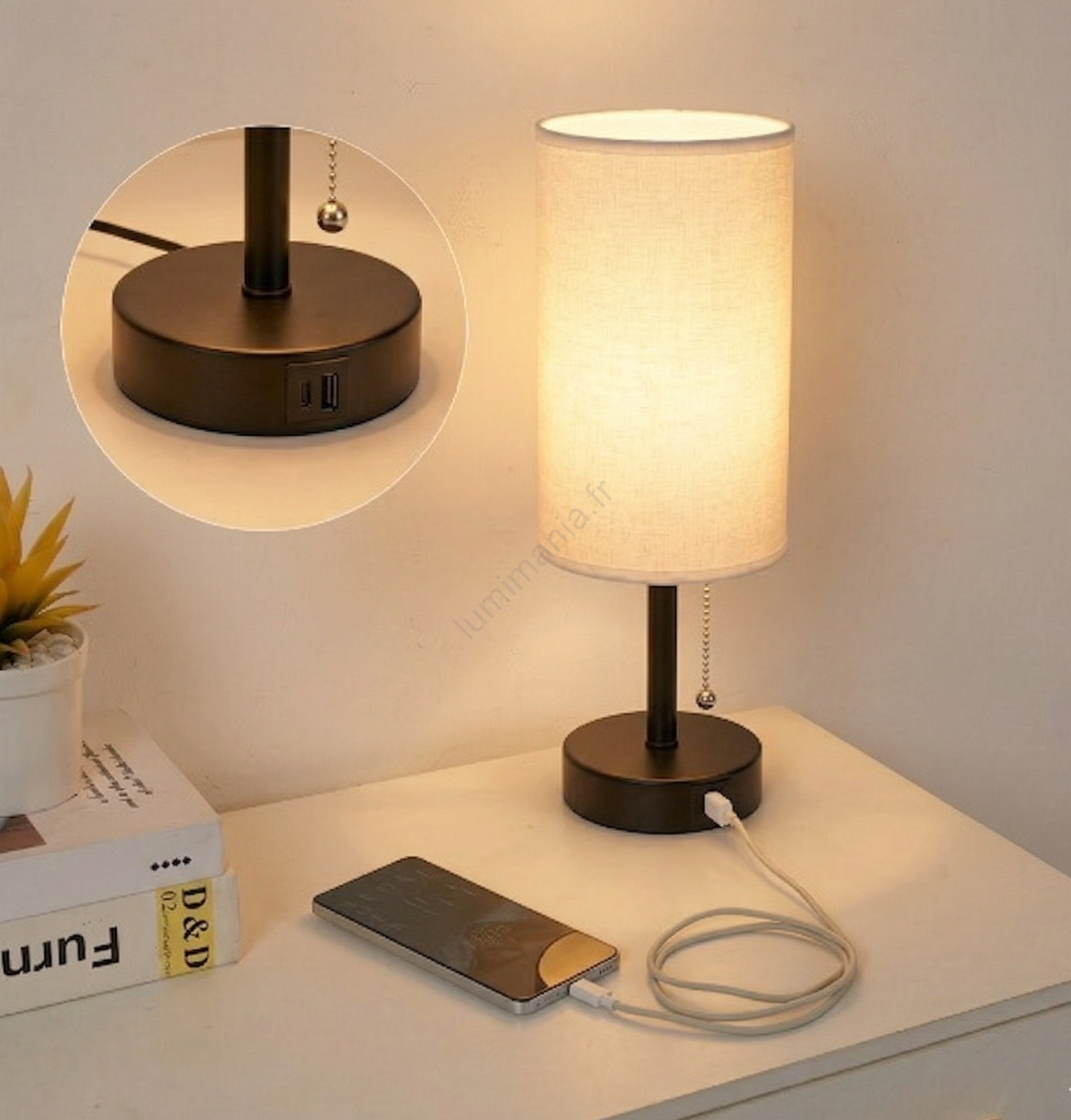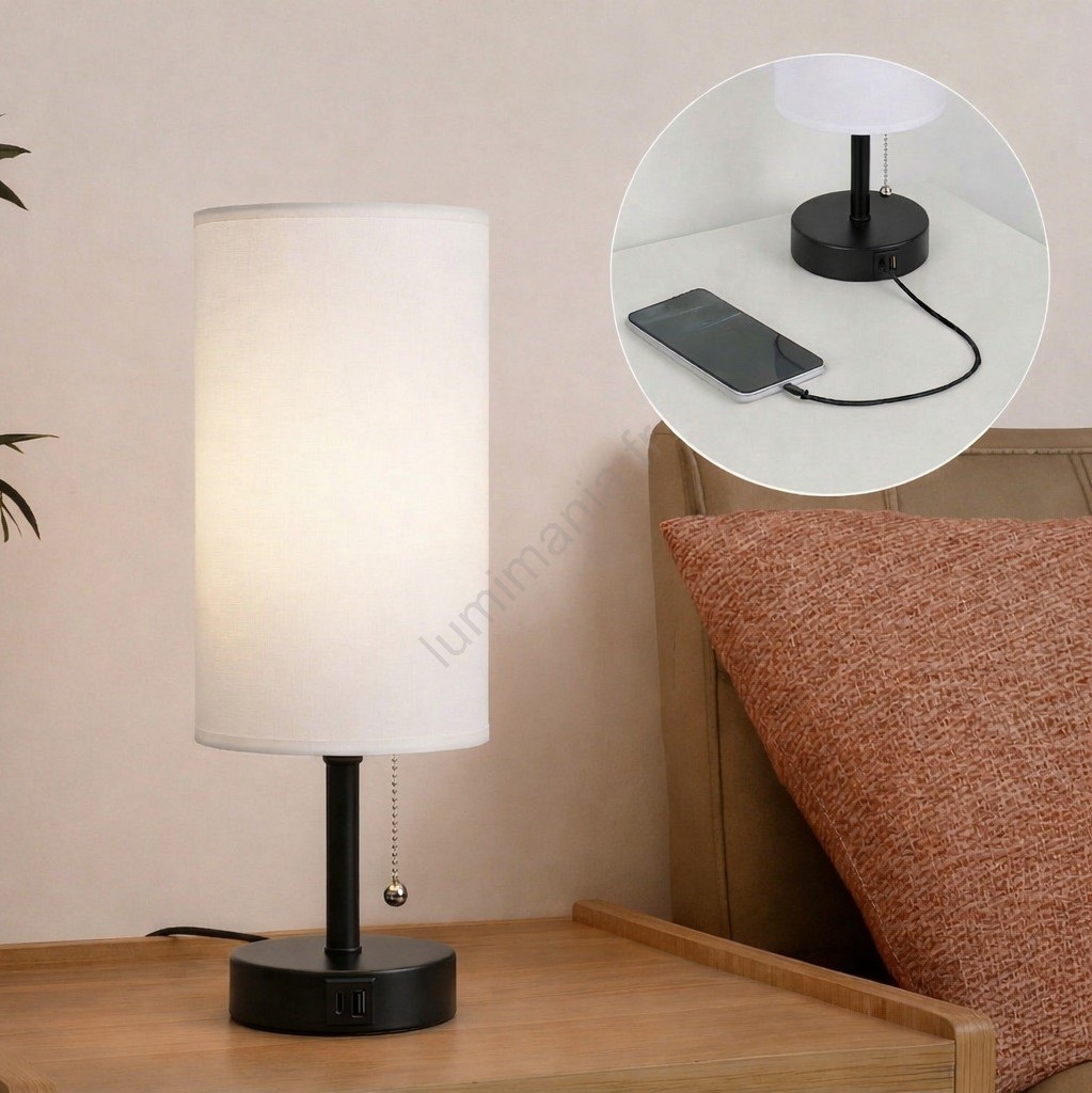 Brilagi - Lampe de table TABLON avec port USB 1xE27/25W/230V noire/blanche caractérise un design agréable et fonctionnel.  Une ampoule à culot E27 convient pour ce luminaire. Ici, vous pouvez acheter d'autres ampoules à des prix avantageux. Vous aurez un ajout intéressant dans votre intérieur.