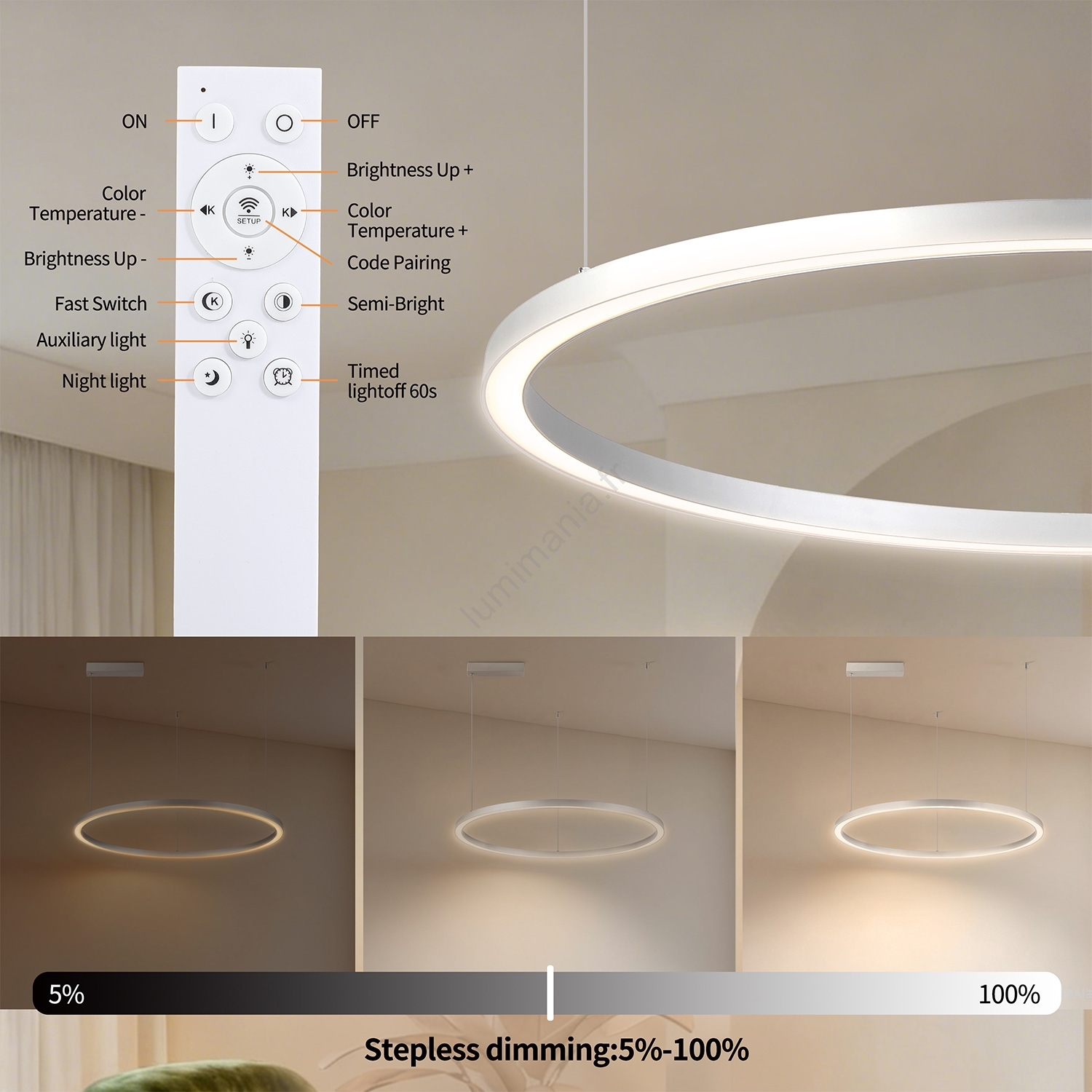 • Brilagi - Suspension LED dimmable sur câble PORTOFINO LED/60W/230V 3000-6000K Ø 80 cm blanc + télécommande
