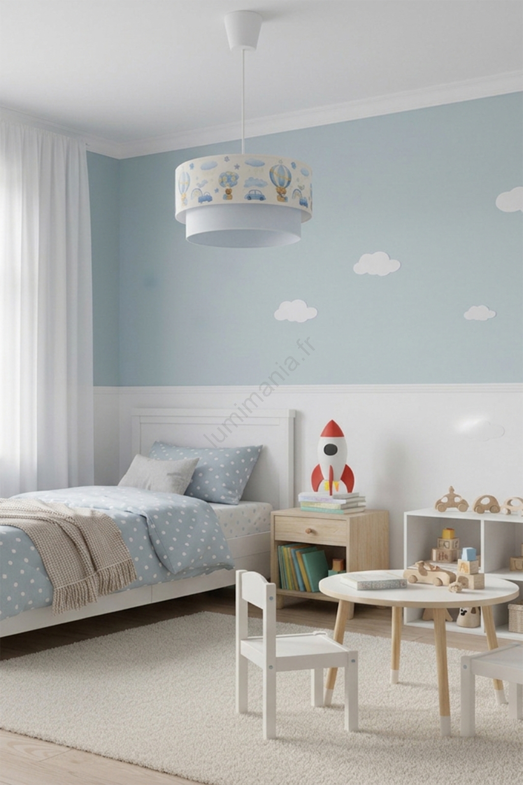 • Brilagi - Lustre LED pour enfant sur câble BOBO 1xE27/10W/230V Ø 40 cm crème/bleu/oursons