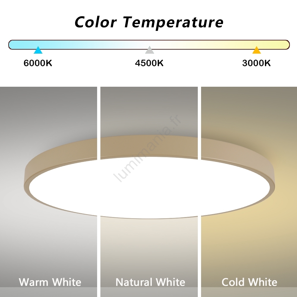 • 3000 K – lumière blanche chaude (ambiance agréable, détente).