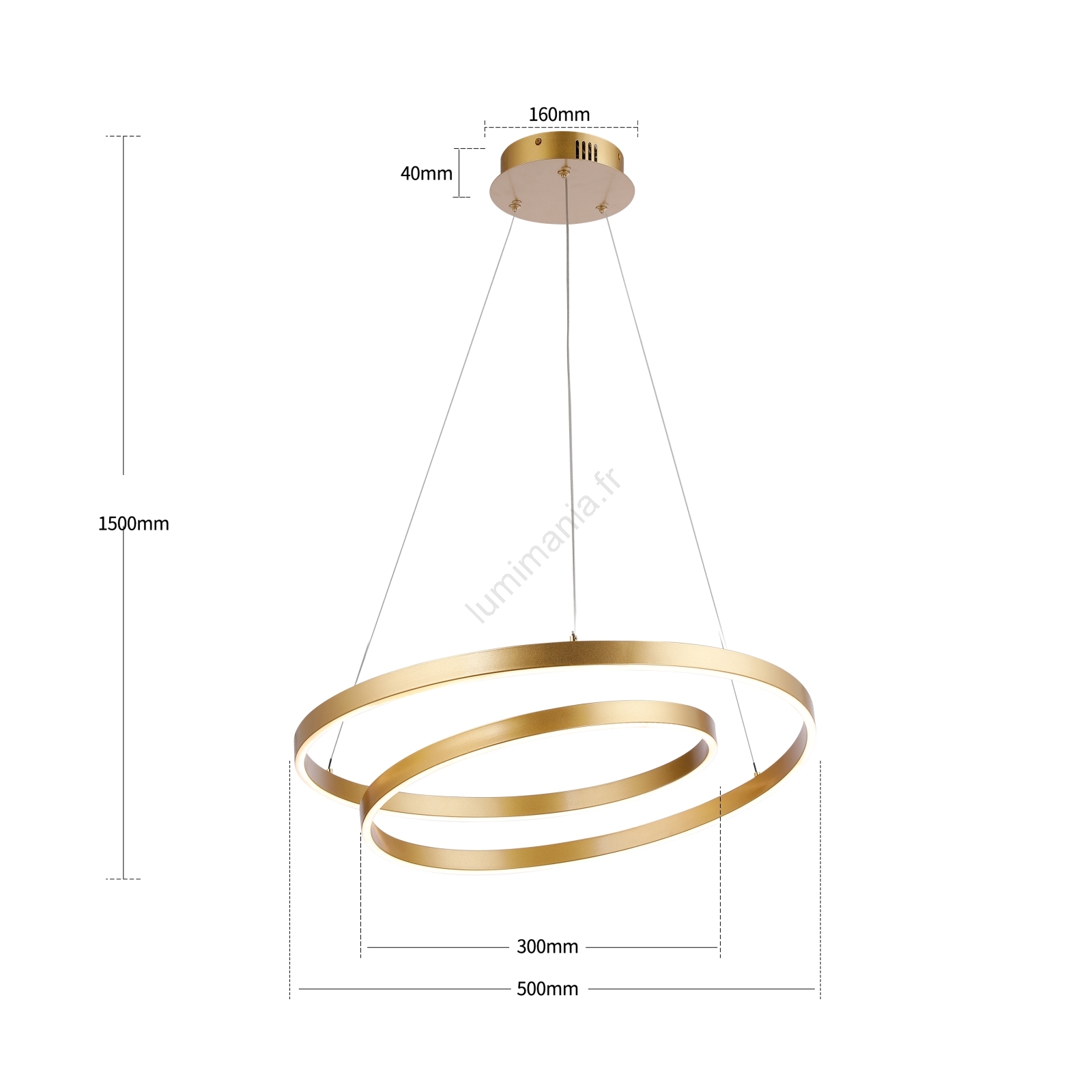 • Brilagi - Suspension LED dimmable sur câble TWISTER LED/48W/230V 3000-6000K Ø 50 cm dorée + télécommande