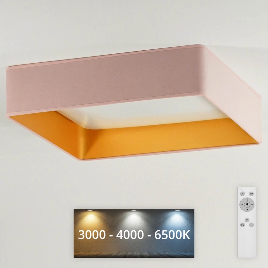 • Brilagi - Plafonnier LED dimmable VELVET SQUARE LED/24W/230V 43x43 cm 3000/4000/6500K + télécommande, rose