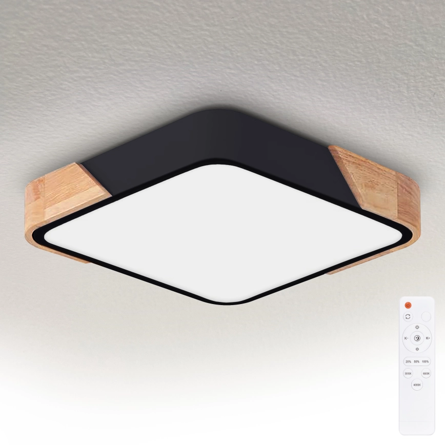 Brilagi - Plafonnier LED dimmable PILANA LED/48W/230V 3000-6500K chêne/noir 42x42 cm + télécommande