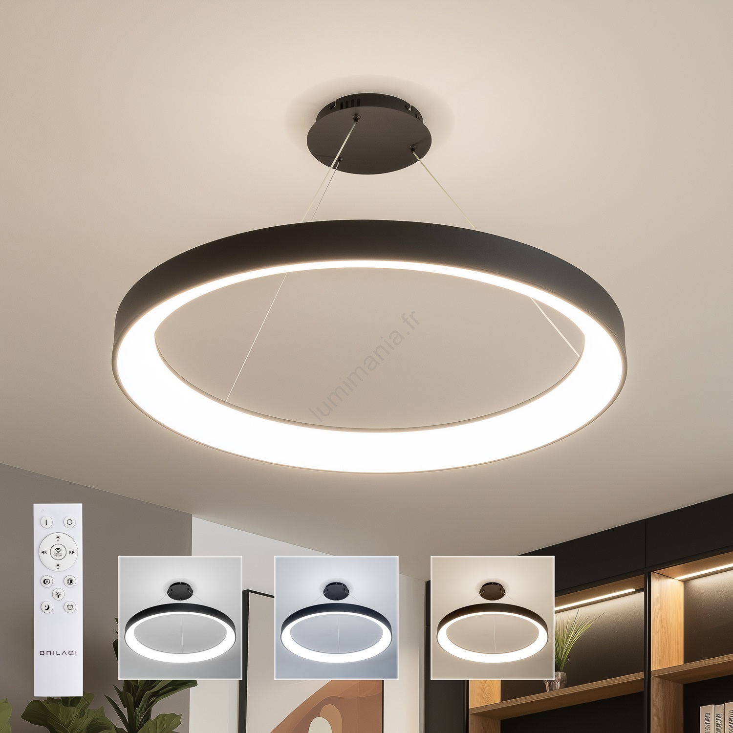 • Brilagi - Suspension LED dimmable sur câble FALCON II LED/108W/230V 3000-6500K Ø 80 cm noir + télécommande