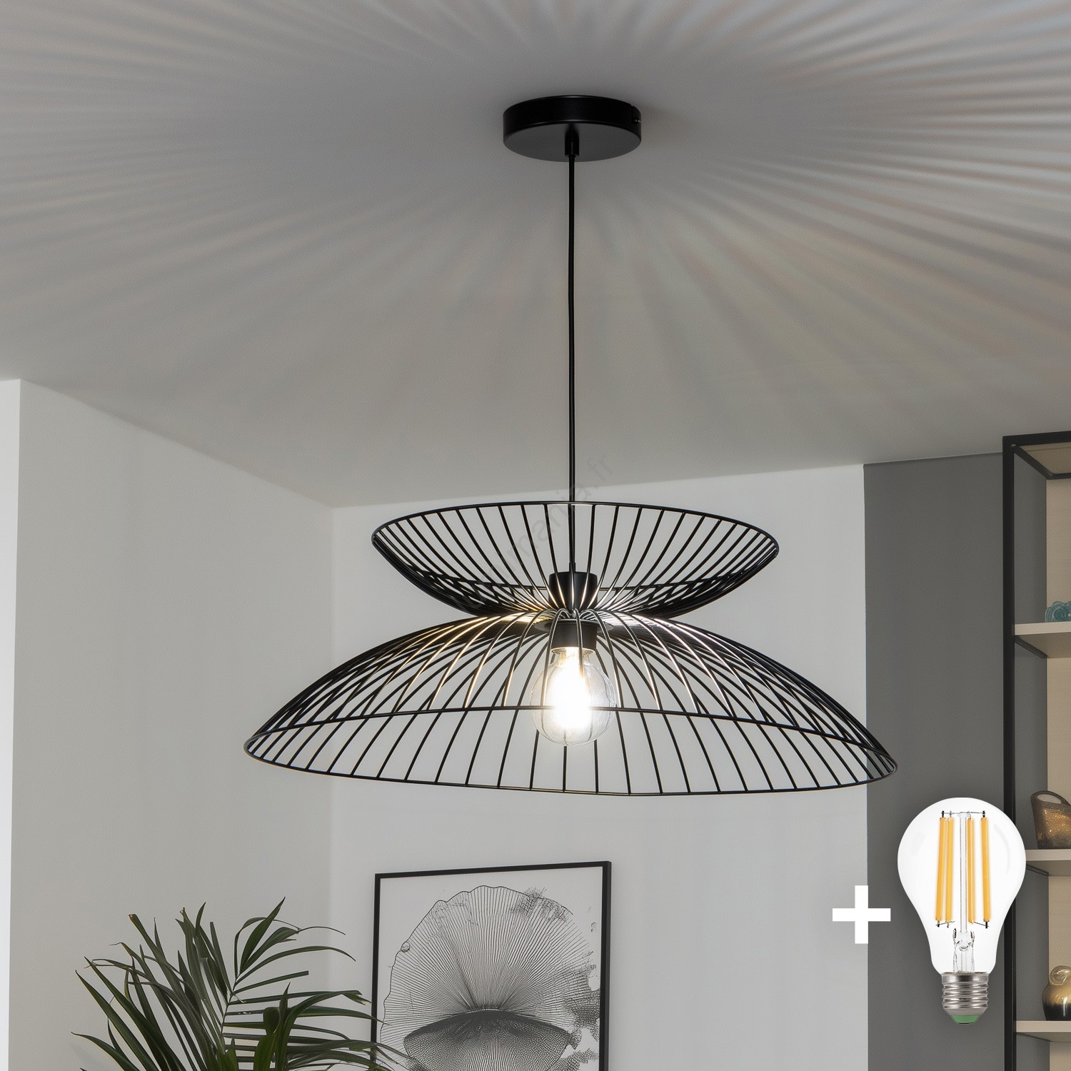 Brilagi - Lustre LED sur câble CERIA WIRE 1xE27/40W/230V Ø 60 cm noir caractérise un design agréable et fonctionnel.  Une ampoule à culot E27 convient pour ce luminaire. Ici, vous pouvez acheter d'autres ampoules à des prix avantageux. Vous aurez un ajout intéressant dans votre intérieur.