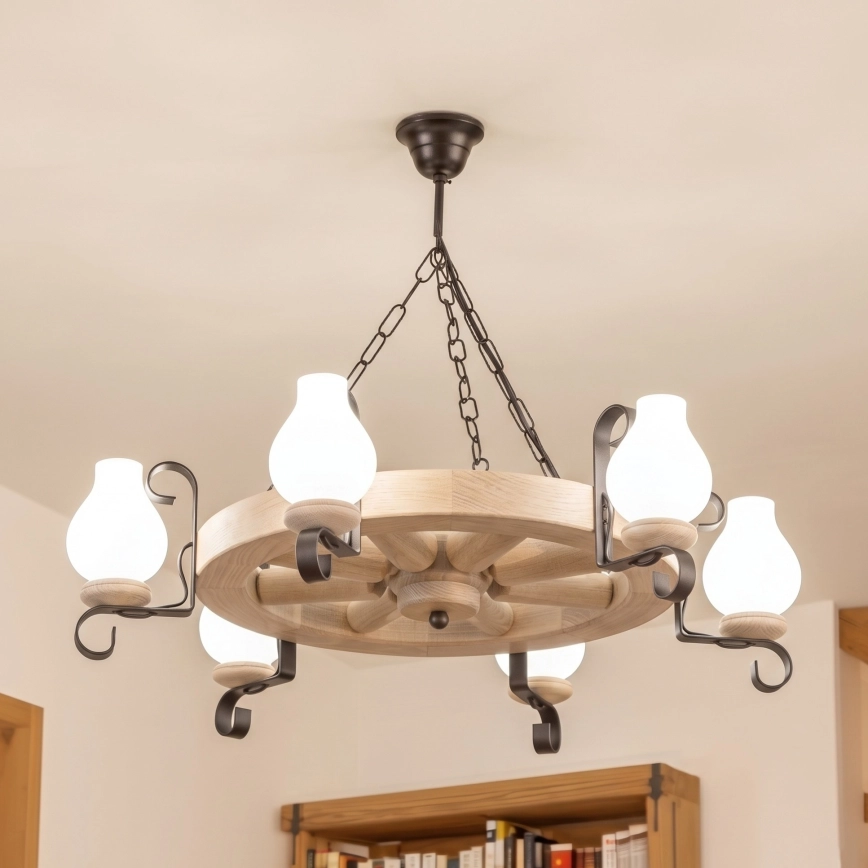 Brilagi - Lustre suspendu sur chaîne ROATA 6xE14/40W/230V chêne caractérise un design agréable et fonctionnel.  Une ampoule à culot E14 convient pour ce luminaire. Ici, vous pouvez acheter d'autres ampoules à des prix avantageux. Vous aurez un ajout intéressant dans votre intérieur.