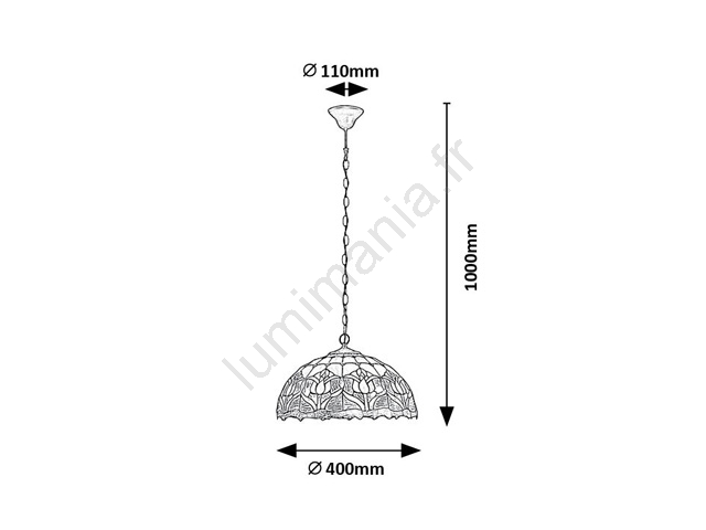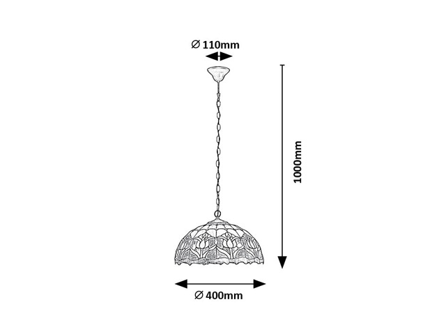 • Brilagi - suspension Tiffany en vitrail sur chaîne GARLAN 2xE27/60W/230V