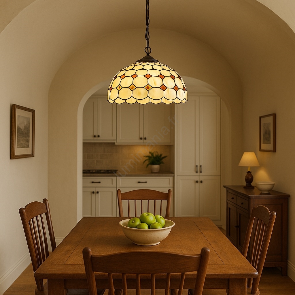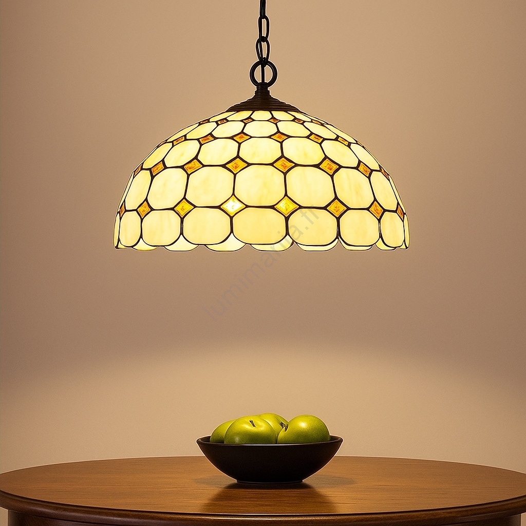 Brilagi - Lustre Tiffany en vitrail, suspendu sur chaîne DORAN 2xE27/60W/230V caractérise un design agréable et fonctionnel.  Une ampoule à culot E27 convient pour ce luminaire. Ici, vous pouvez acheter d'autres ampoules à des prix avantageux. Vous aurez un ajout intéressant dans votre intérieur.