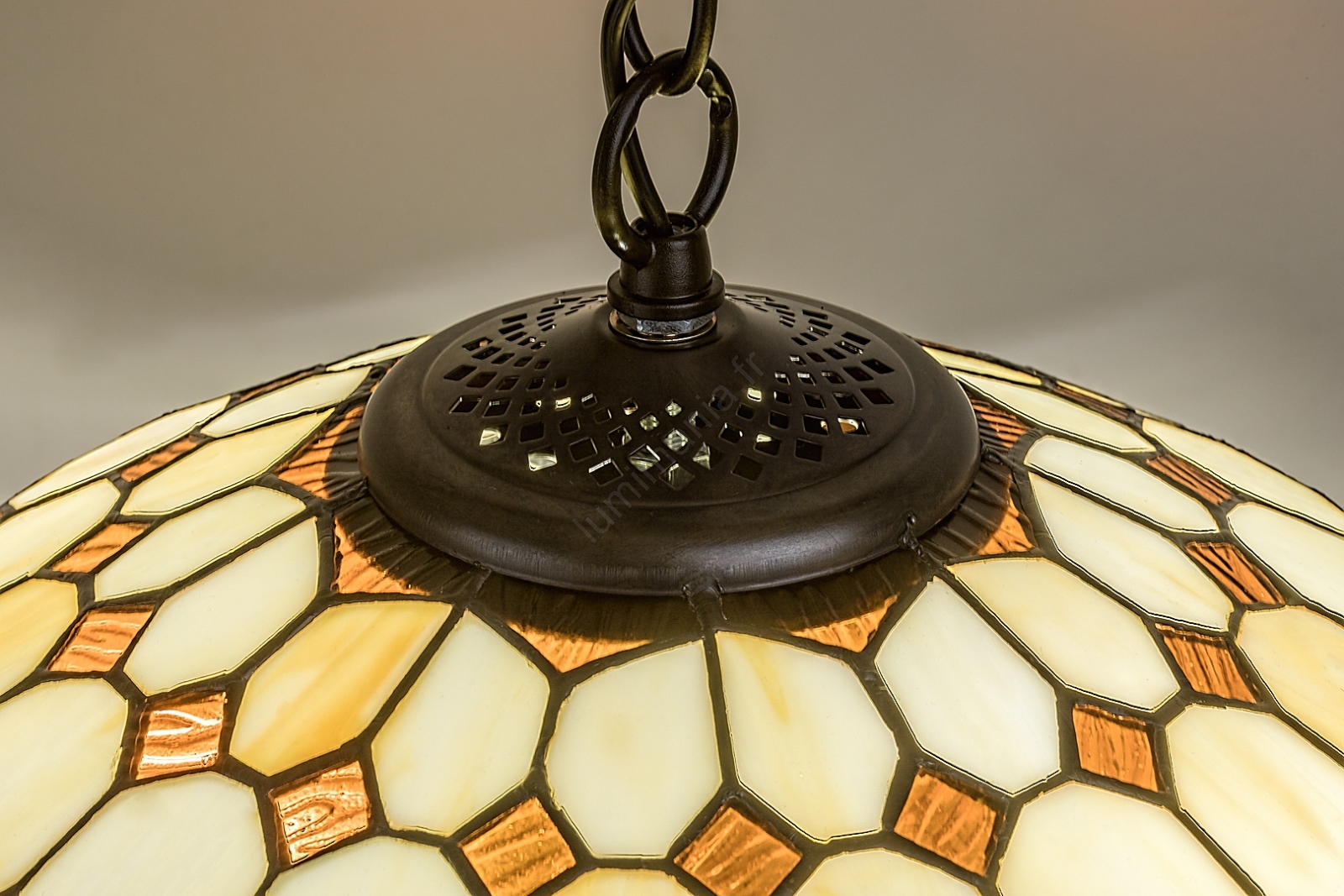 • Brilagi - suspension Tiffany en vitrail sur chaîne GARLAN 2xE27/60W/230V