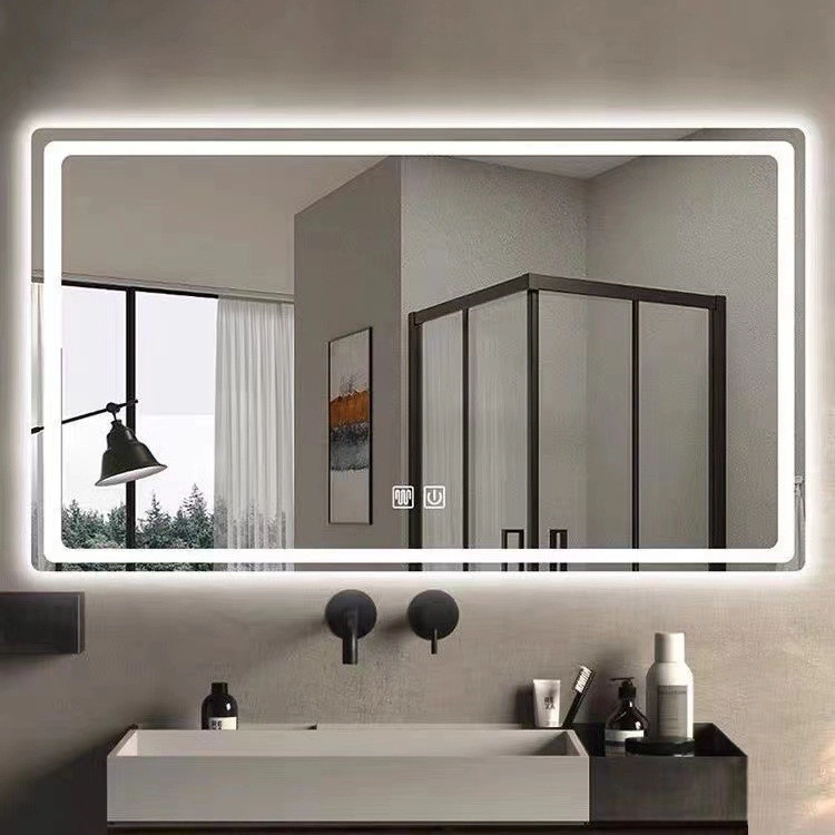 • Miroir de salle de bain sans cadre avec fonction chauffante anti-buée et éclairage LED intégré.