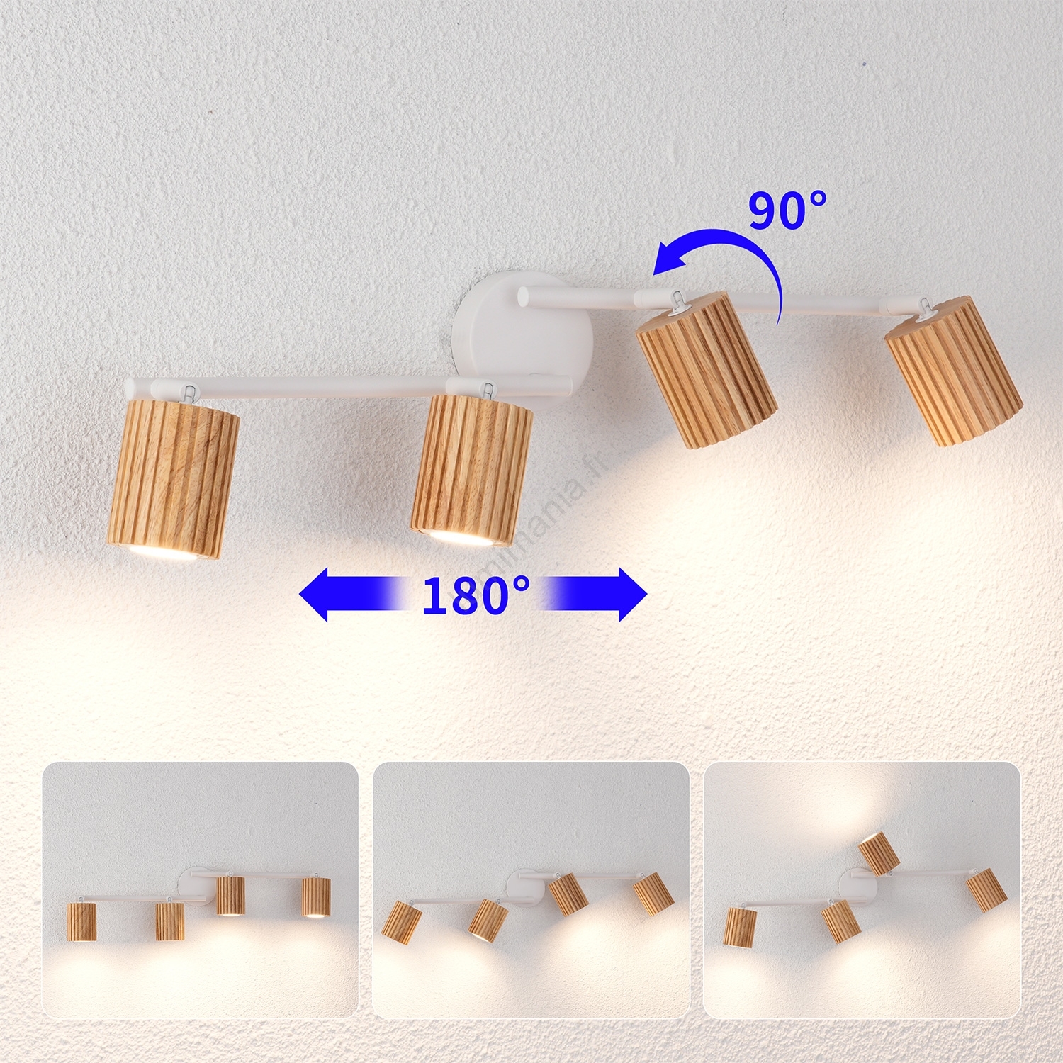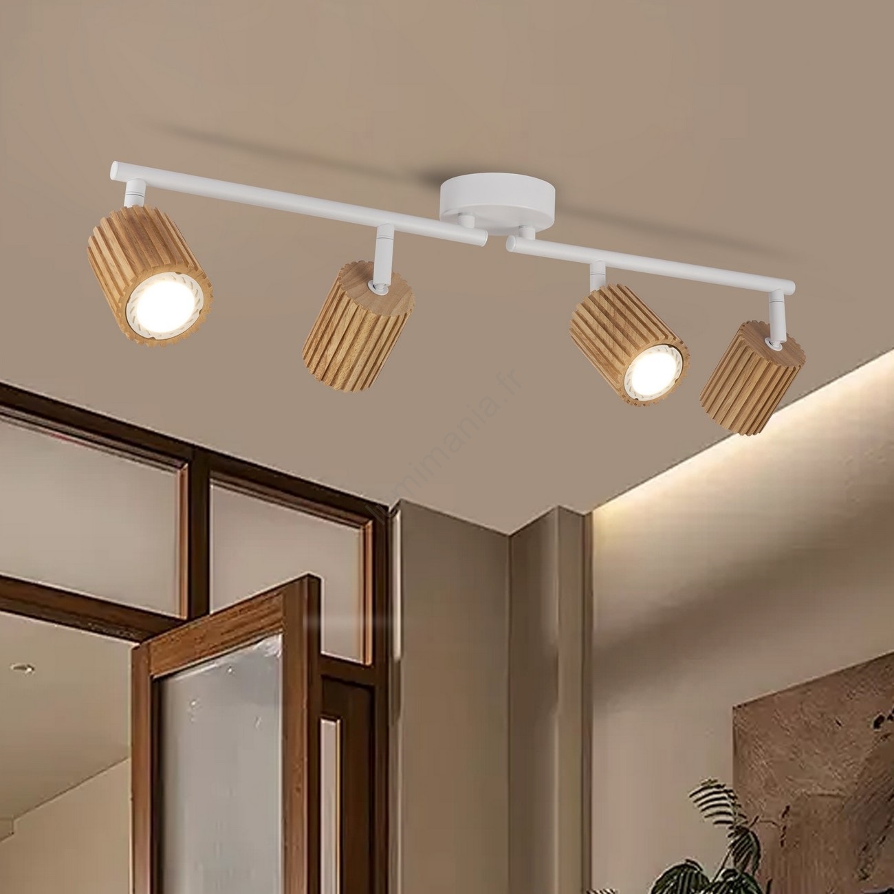 Brilagi - Plafonnier à spots MODERN WOOD 4xGU10/8W/230V bois d'hévéa/blanc caractérise un design agréable et fonctionnel.  Une ampoule à culot GU10 convient pour ce luminaire. Ici, vous pouvez acheter d'autres ampoules à des prix avantageux. Vous aurez un ajout intéressant dans votre intérieur.