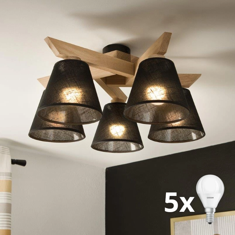 Brilagi - LED Plafonnier ANTHONY 5xE14/40W/230V chêne/noir caractérise un design agréable et fonctionnel.  Une ampoule à culot E14 convient pour ce luminaire. Ici, vous pouvez acheter d'autres ampoules à des prix avantageux. Vous aurez un ajout intéressant dans votre intérieur.