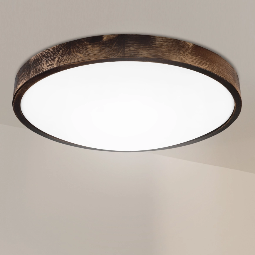 Brilagi - Plafonnier CARVALHO SMOKEY 3xE27/60W/230V chêne Ø 47,5 cm caractérise un design agréable et fonctionnel.  Une ampoule à culot E27 convient pour ce luminaire. Ici, vous pouvez acheter d'autres ampoules à des prix avantageux. Vous aurez un ajout intéressant dans votre intérieur.