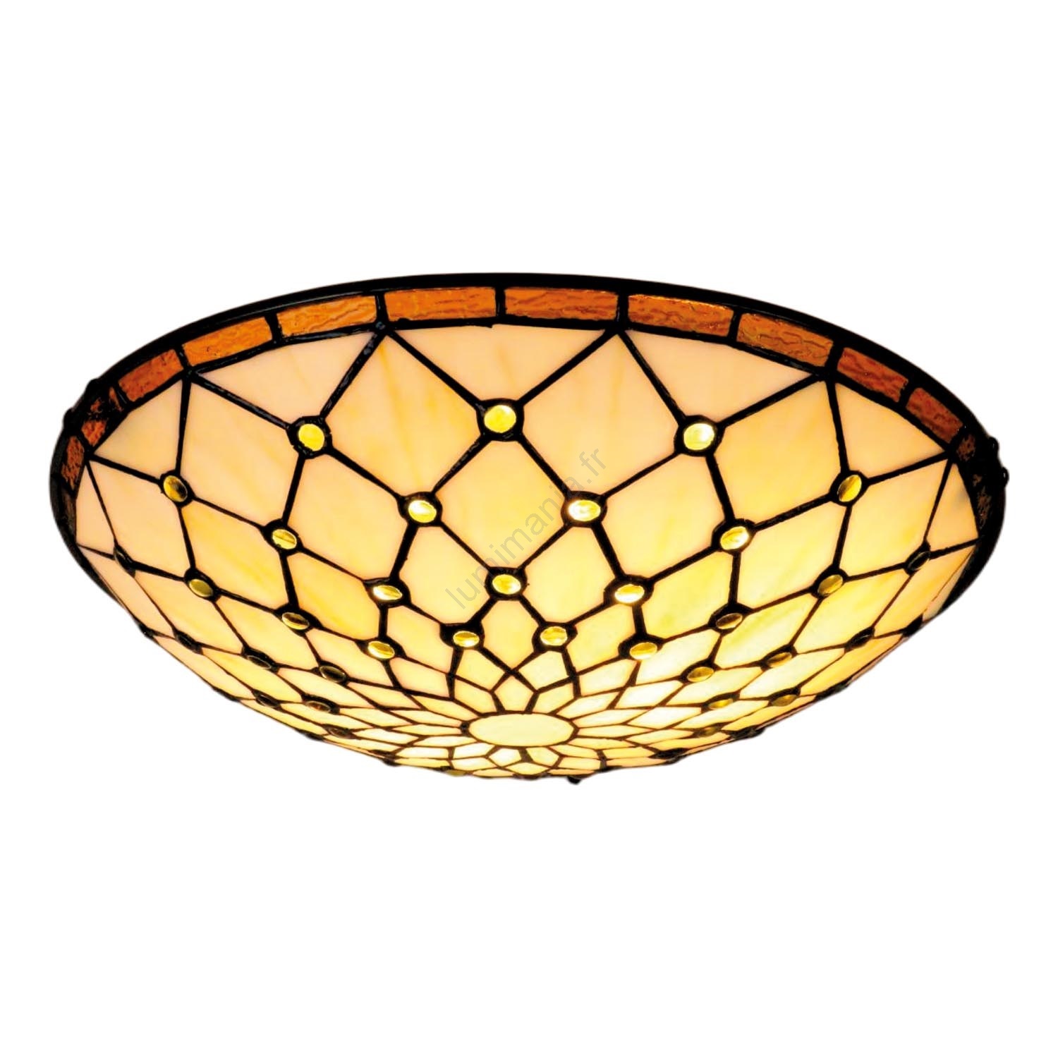 • Brilagi - Plafonnier Tiffany en vitrail IVOIRE 2xE27/60W/230V Ø 40 cm