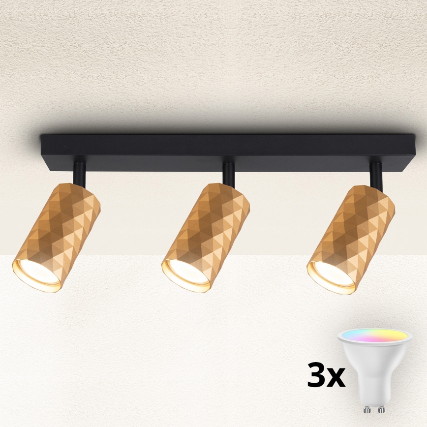 • Brilagi - Spot LED RGBW dimmable SELE DIAMANT 3xGU10/4,8W/230V 3000K doré + télécommande