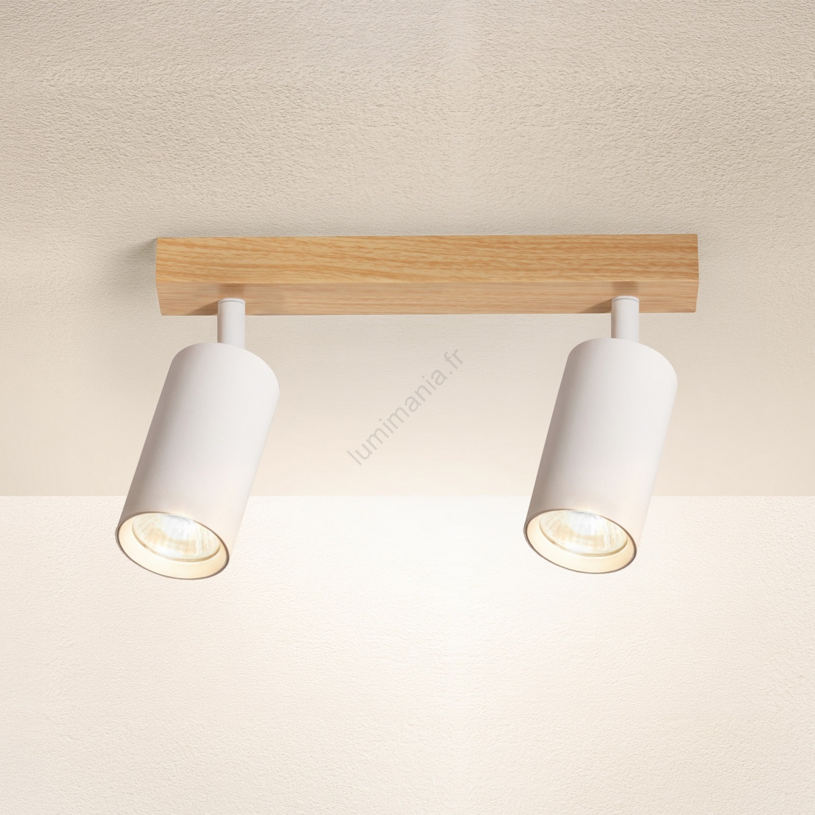 Brilagi - Spot orientable SELE 2xGU10/30W/230V blanc/finition chêne caractérise un design agréable et fonctionnel.  Une ampoule à culot GU10 convient pour ce luminaire. Ici, vous pouvez acheter d'autres ampoules à des prix avantageux. Vous aurez un ajout intéressant dans votre intérieur.