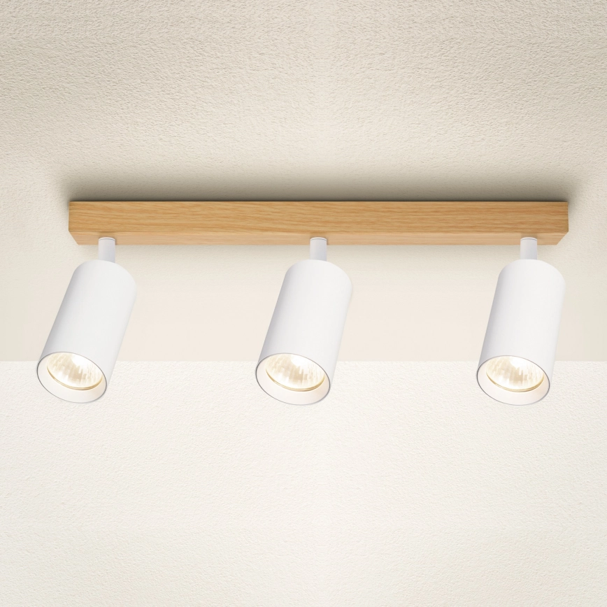 Brilagi - Spot orientable SELE 3xGU10/30W/230V blanc/décor chêne caractérise un design agréable et fonctionnel.  Une ampoule à culot GU10 convient pour ce luminaire. Ici, vous pouvez acheter d'autres ampoules à des prix avantageux. Vous aurez un ajout intéressant dans votre intérieur.