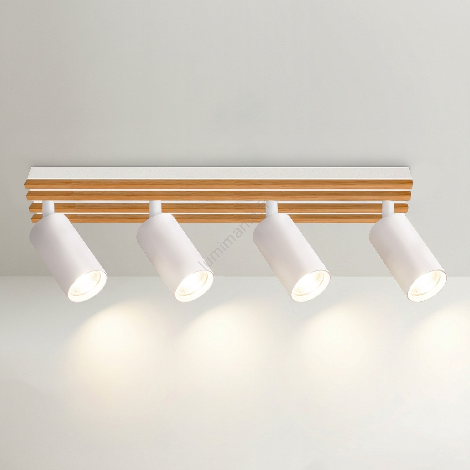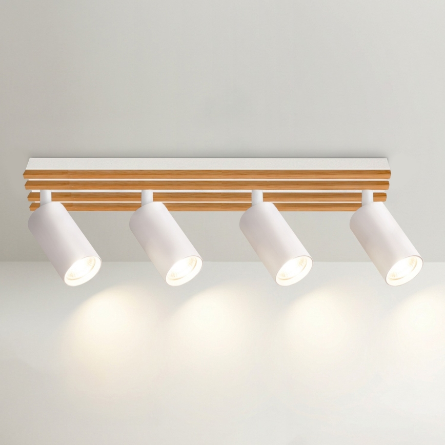 Brilagi - Spot SELE WOOD 4xGU10/30W/230V blanc/bois caractérise un design agréable et fonctionnel.  Une ampoule à culot GU10 convient pour ce luminaire. Ici, vous pouvez acheter d'autres ampoules à des prix avantageux. Vous aurez un ajout intéressant dans votre intérieur.