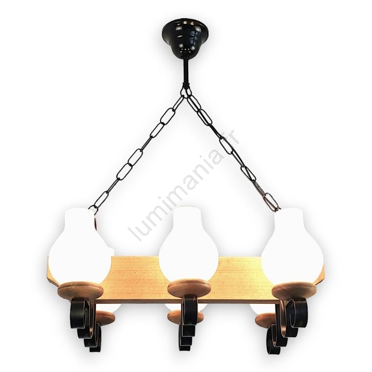 Brilagi - Suspension chaîne QUEEN 6xE14/40W/230V hêtre