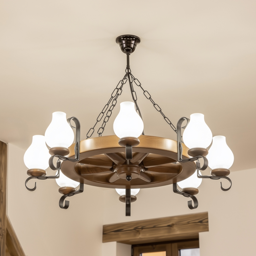 • Brilagi - Lustre suspendu sur chaîne ROATA 8xE14/40W/230V Ø 70 cm en hêtre