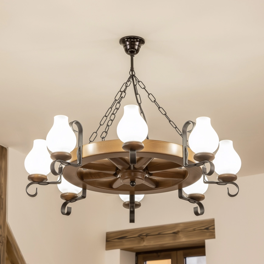 Brilagi - Suspension sur chaîne ROATA 8xE14/40W/230V Ø 70 cm hêtre/noyer caractérise un design agréable et fonctionnel.  Une ampoule à culot E14 convient pour ce luminaire. Ici, vous pouvez acheter d'autres ampoules à des prix avantageux. Vous aurez un ajout intéressant dans votre intérieur.