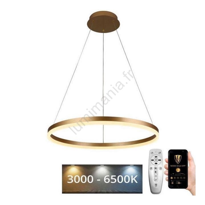 • Brilagi - Suspension LED dimmable CIRCLE LED/70W/230V 3000-6500K Ø 60 cm, finition dorée, télécommande incluse