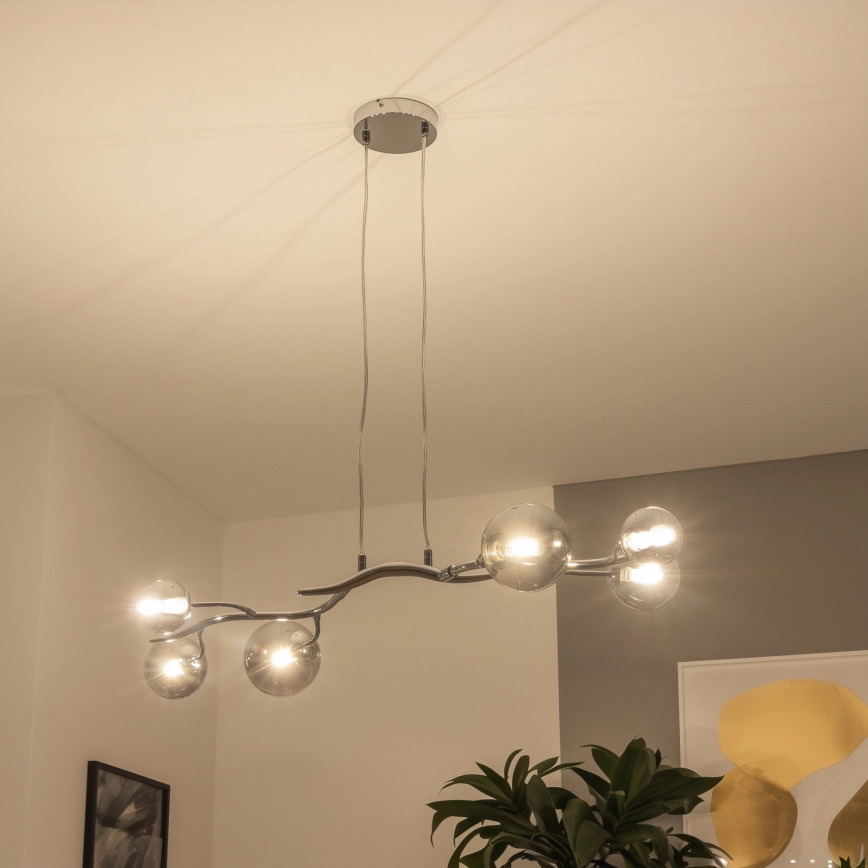 • Brilagi - Lustre LED suspendu sur câble MISTEL 6xG9/3W/230V noir chromé/verre fumé