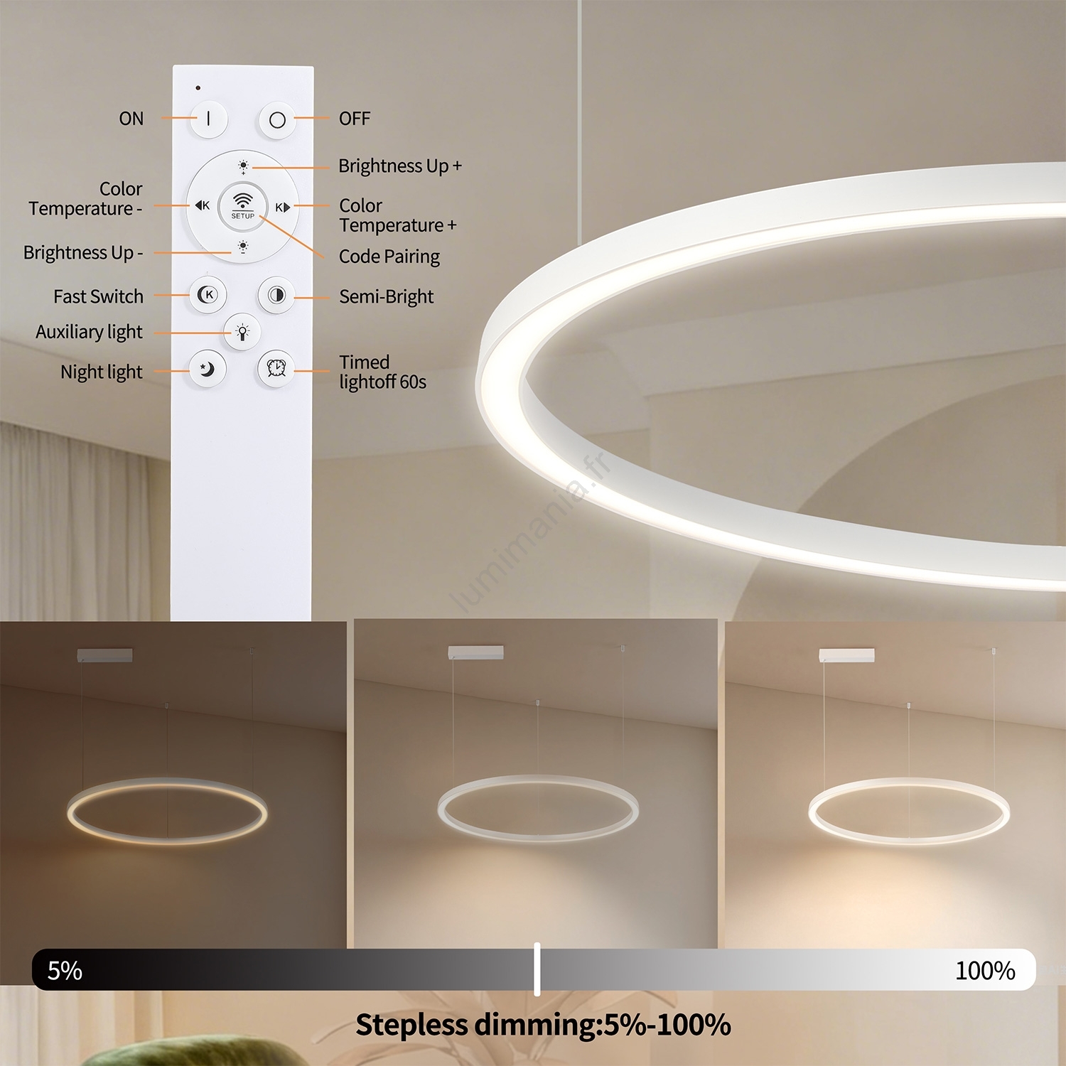 Brilagi - Suspension LED dimmable sur câble PORTOFINO LED/60W/230V 3000-6000K Ø 80 cm blanc + télécommande