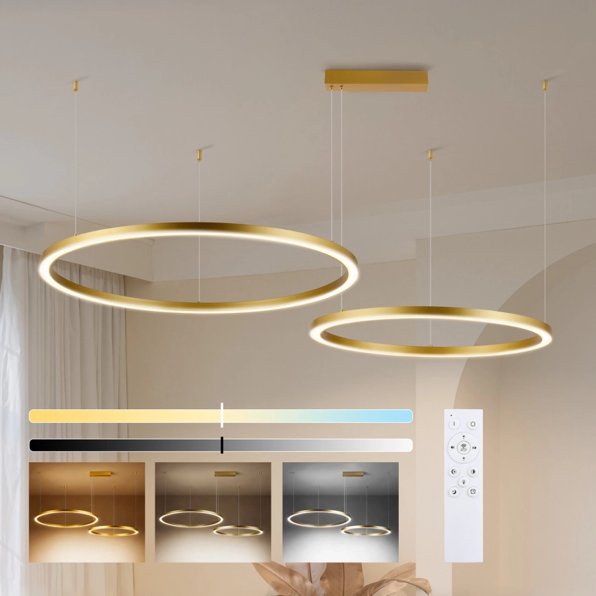 • Brilagi - Suspension LED dimmable sur câble PORTOFINO LED/98W/230V 3000-6000K dorée + télécommande