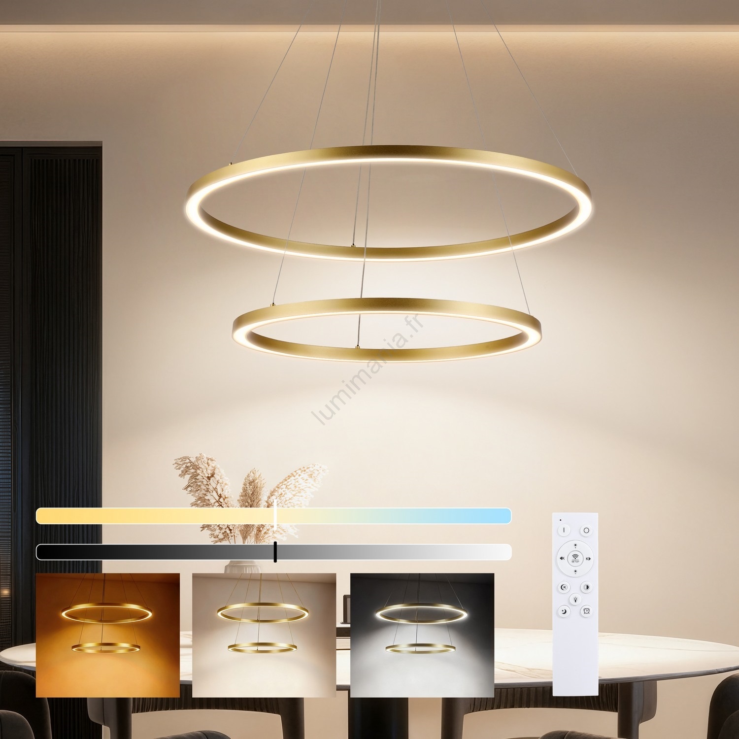• Brilagi - Suspension LED dimmable sur câble PORTOFINO LED/60W/230V 3000-6000K diam. 80 cm dorée + télécommande