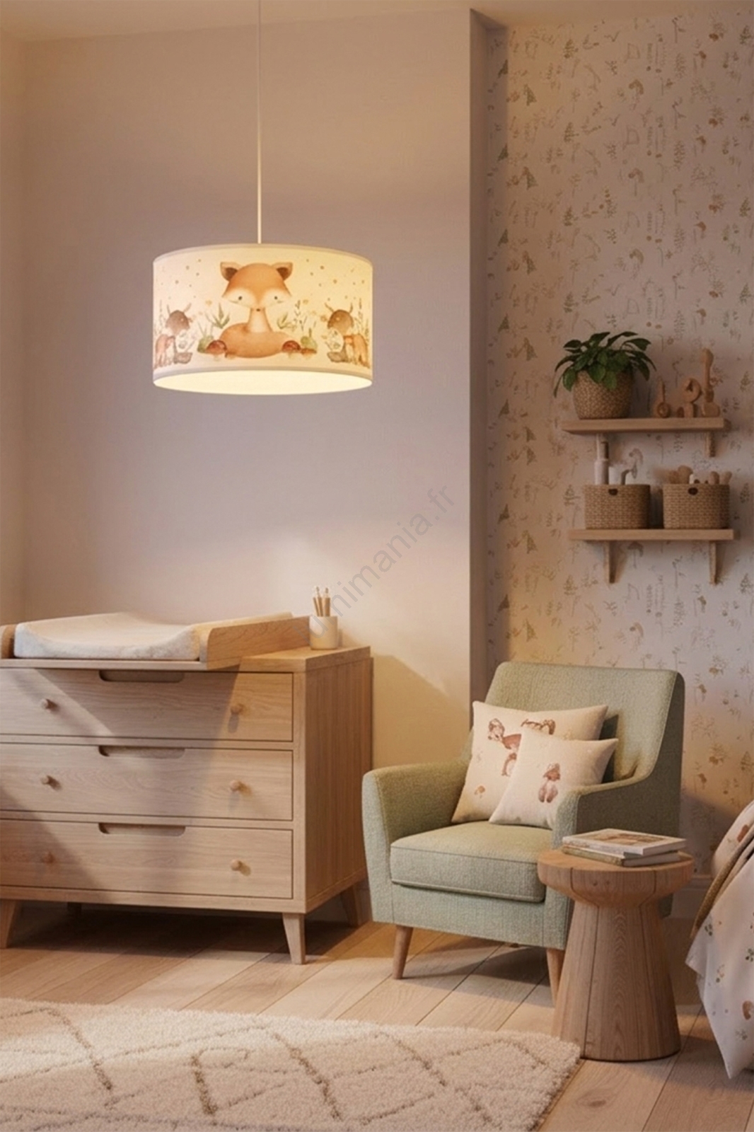 Brilagi - Suspension LED pour enfants sur câble BOBO 1xE27/10W/230V Ø 35 cm blanc à motifs animaux caractérise un design agréable et fonctionnel.  Une ampoule à culot E27 convient pour ce luminaire. Ici, vous pouvez acheter d'autres ampoules à des prix avantageux. Vous aurez un ajout intéressant dans votre intérieur.