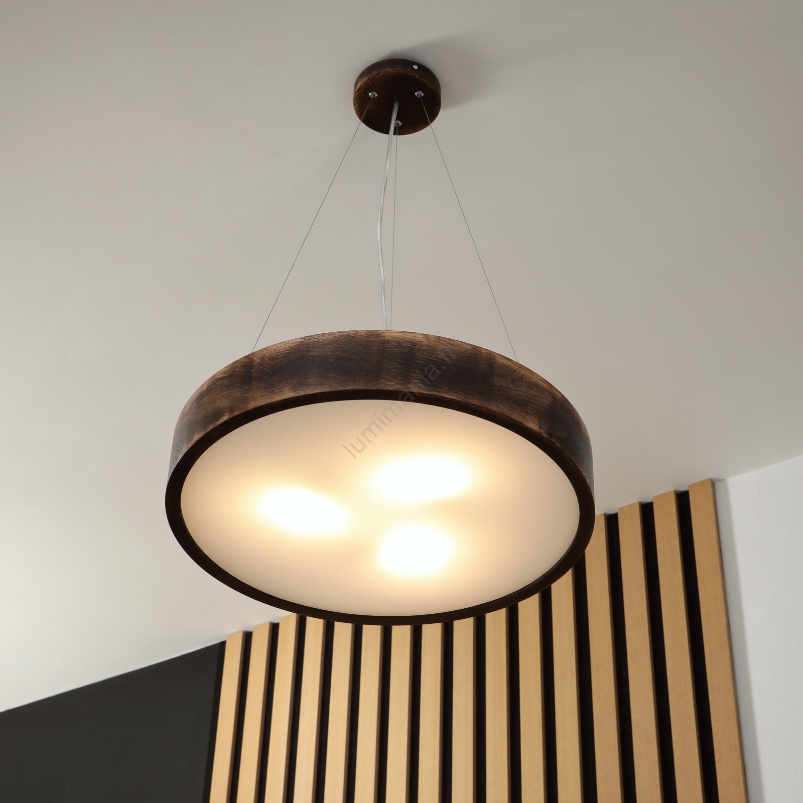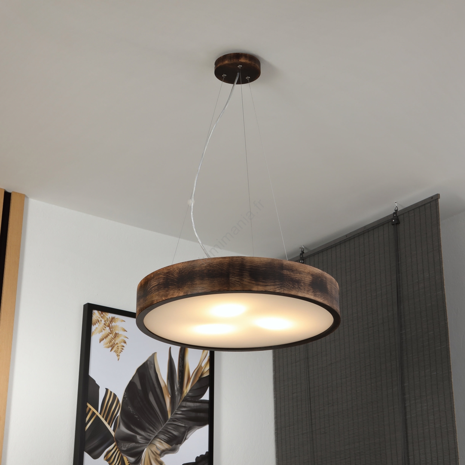 Brilagi - Suspension LED sur câble CARVALHO SMOKEY 3xE27/60W/230V chêne Ø 47,5 cm caractérise un design agréable et fonctionnel.  Une ampoule à culot E27 convient pour ce luminaire. Ici, vous pouvez acheter d'autres ampoules à des prix avantageux. Vous aurez un ajout intéressant dans votre intérieur.