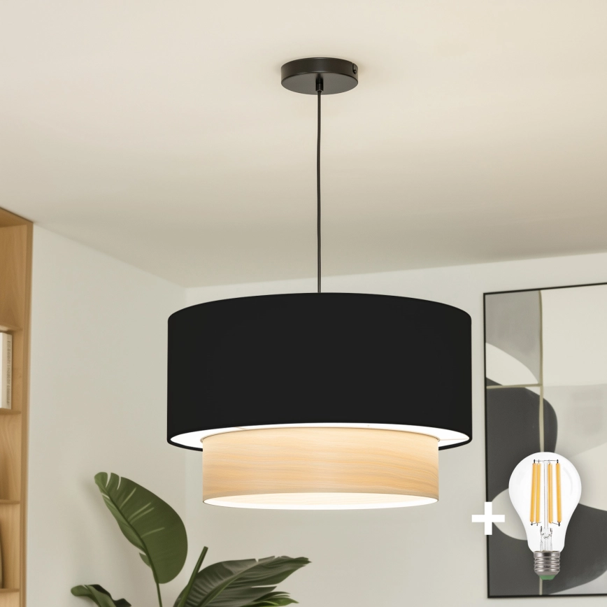 • Brilagi - Suspension LED sur câble CERIA 1xE27/40W/230V Ø 50 cm noir/beige