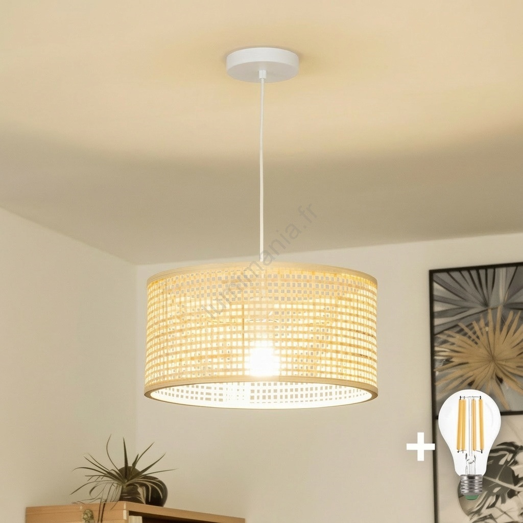 Brilagi - Suspension LED sur câble CERIA BOHO 1xE27/40W/230V Ø 25 cm en bambou caractérise un design agréable et fonctionnel.  Une ampoule à culot E27 convient pour ce luminaire. Ici, vous pouvez acheter d'autres ampoules à des prix avantageux. Vous aurez un ajout intéressant dans votre intérieur.