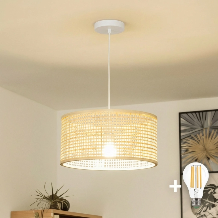 Brilagi - Suspension LED sur câble CERIA BOHO 1xE27/40W/230V Ø 40 cm bambou caractérise un design agréable et fonctionnel.  Une ampoule à culot E27 convient pour ce luminaire. Ici, vous pouvez acheter d'autres ampoules à des prix avantageux. Vous aurez un ajout intéressant dans votre intérieur.