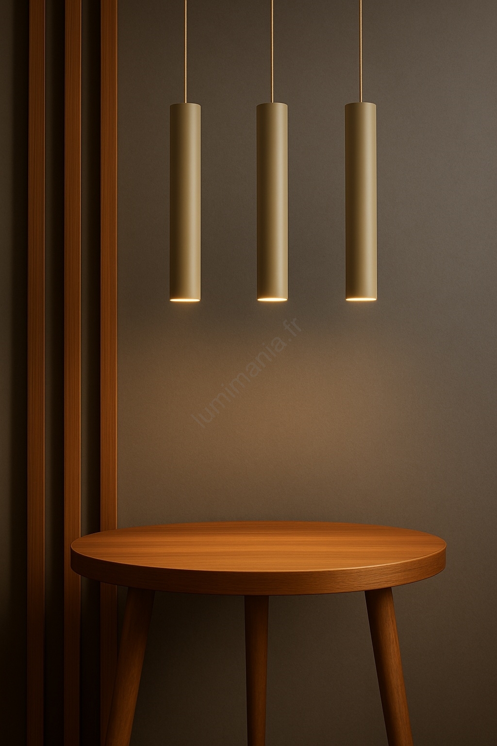 Brilagi - Suspension sur câble 1xGU10/15W/230V beige/doré caractérise un design agréable et fonctionnel.  Une ampoule à culot GU10 convient pour ce luminaire. Ici, vous pouvez acheter d'autres ampoules à des prix avantageux. Vous aurez un ajout intéressant dans votre intérieur.