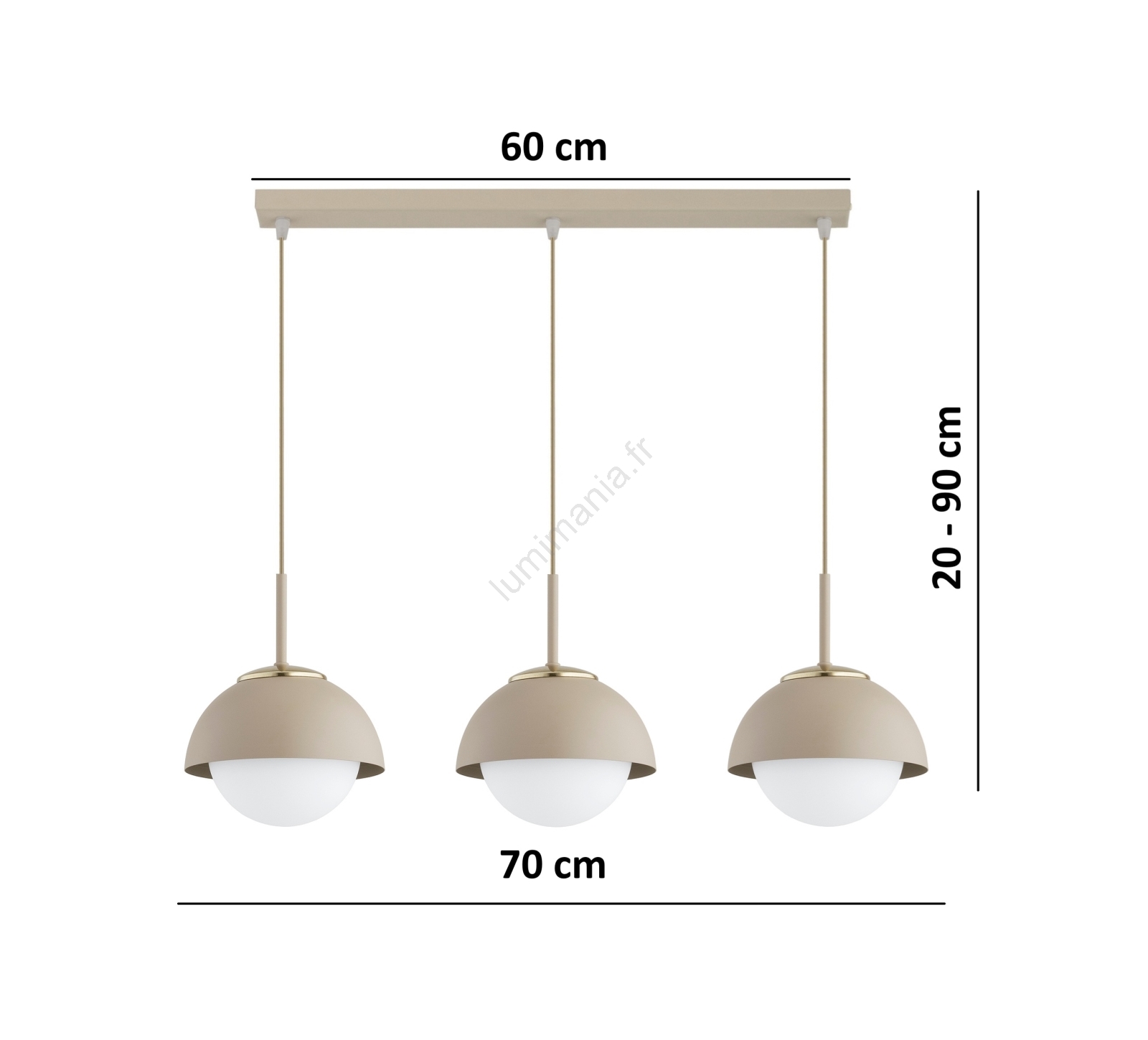 Brilagi - Suspension sur câble 3xE27/60W/230V beige/doré caractérise un design agréable et fonctionnel.  Une ampoule à culot E27 convient pour ce luminaire. Ici, vous pouvez acheter d'autres ampoules à des prix avantageux. Vous aurez un ajout intéressant dans votre intérieur.
