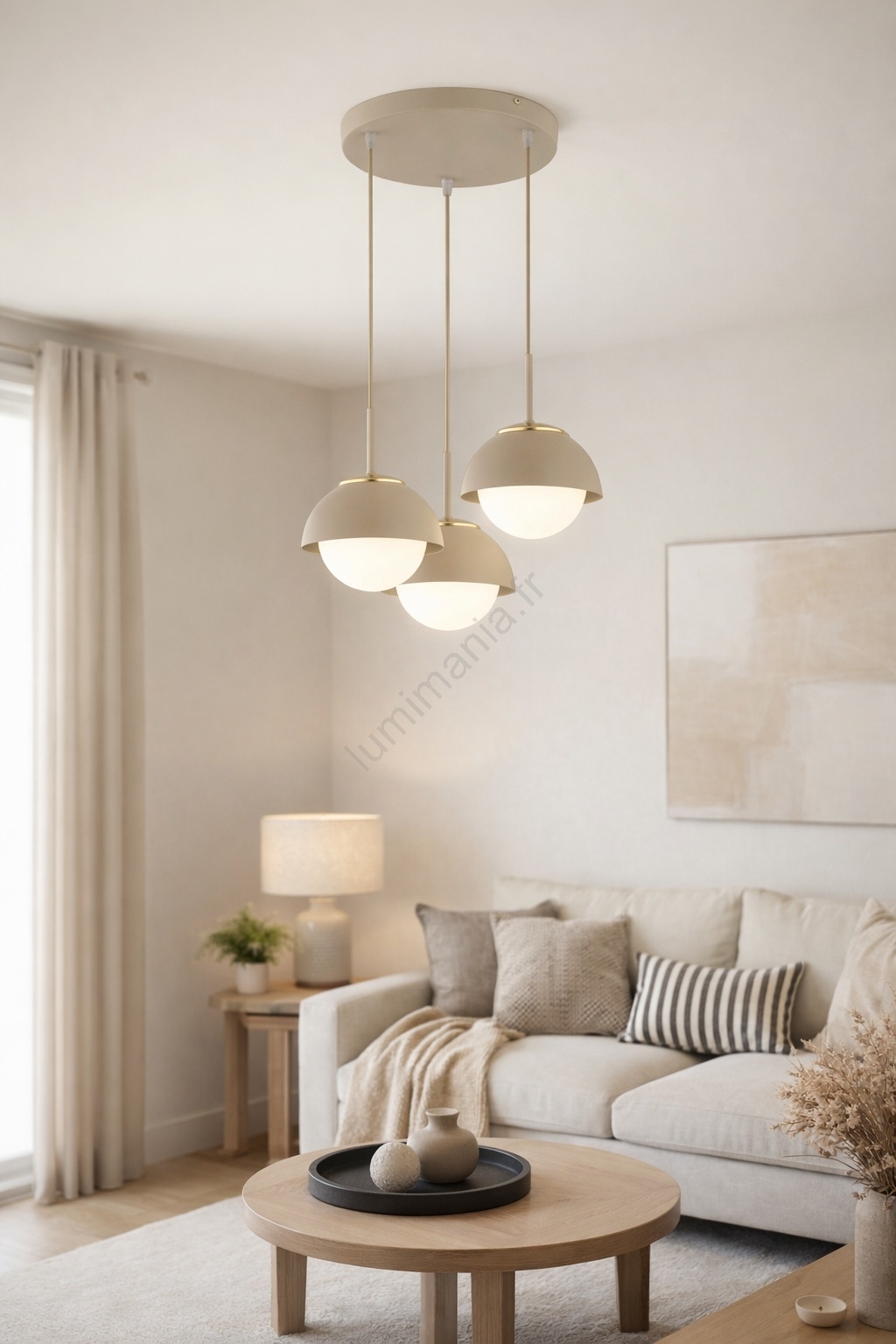 Brilagi - Suspension sur câble 3xE27/60W/230V beige/doré caractérise un design agréable et fonctionnel.  Une ampoule à culot E27 convient pour ce luminaire. Ici, vous pouvez acheter d'autres ampoules à des prix avantageux. Vous aurez un ajout intéressant dans votre intérieur.