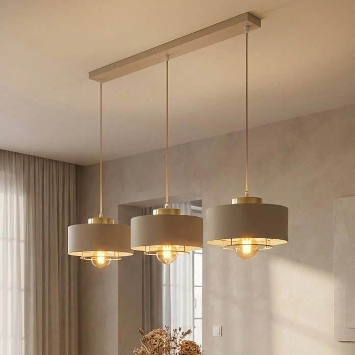 Brilagi - Suspension sur câble 3xE27/60W/230V beige/doré caractérise un design agréable et fonctionnel.  Une ampoule à culot E27 convient pour ce luminaire. Ici, vous pouvez acheter d'autres ampoules à des prix avantageux. Vous aurez un ajout intéressant dans votre intérieur.