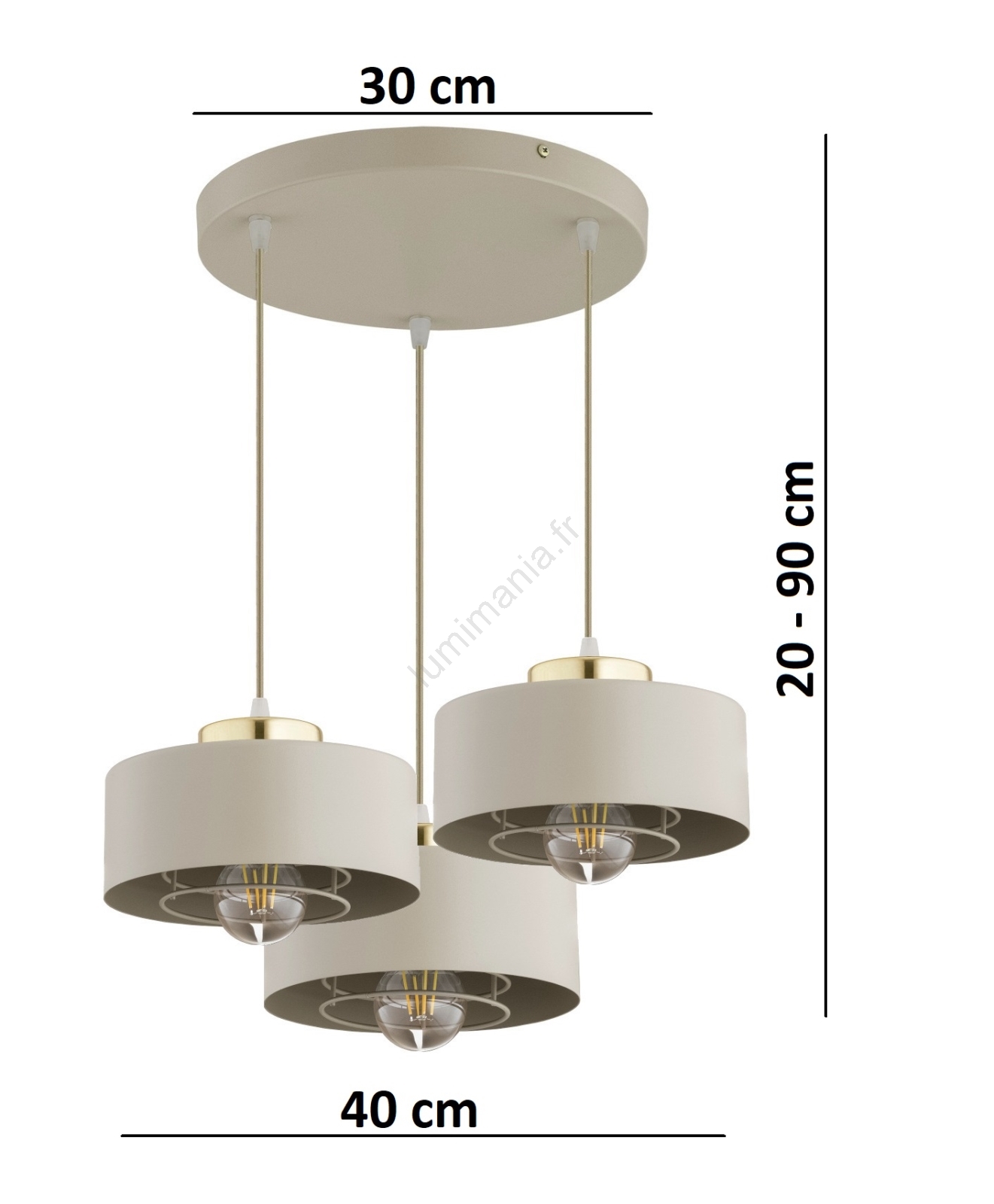 Brilagi - Suspension sur câble 3xE27/60W/230V beige/doré caractérise un design agréable et fonctionnel.  Une ampoule à culot E27 convient pour ce luminaire. Ici, vous pouvez acheter d'autres ampoules à des prix avantageux. Vous aurez un ajout intéressant dans votre intérieur.