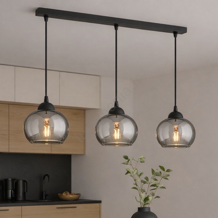 Brilagi - Suspension sur câble 3xE27/60W/230V noir/gris fumé caractérise un design agréable et fonctionnel.  Une ampoule à culot E27 convient pour ce luminaire. Ici, vous pouvez acheter d'autres ampoules à des prix avantageux. Vous aurez un ajout intéressant dans votre intérieur.
