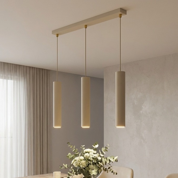 Brilagi - Suspension sur câble 3xGU10/15W/230V beige/doré caractérise un design agréable et fonctionnel.  Une ampoule à culot GU10 convient pour ce luminaire. Ici, vous pouvez acheter d'autres ampoules à des prix avantageux. Vous aurez un ajout intéressant dans votre intérieur.