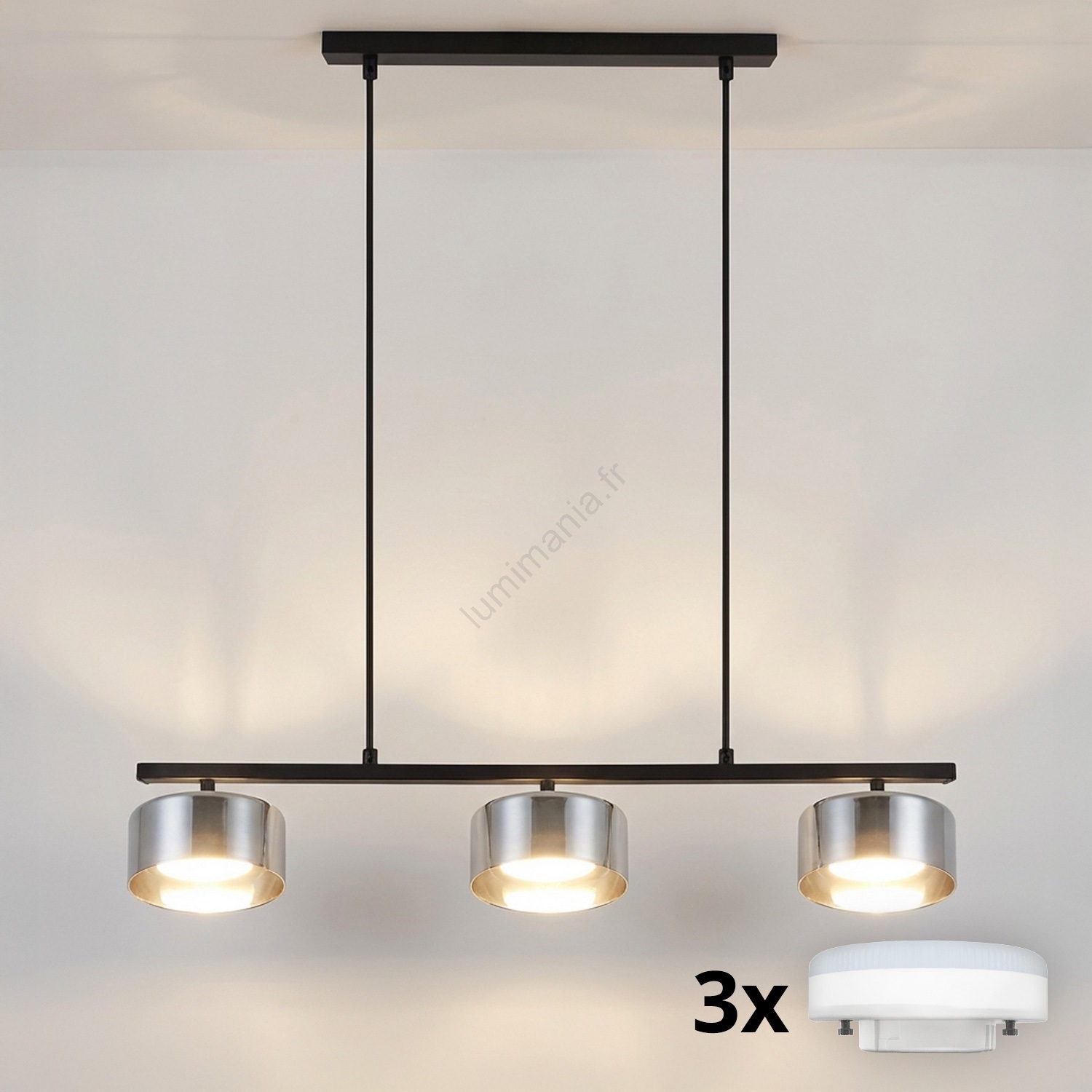 • Brilagi - LED Suspension sur câble AURA LUX 3xGX53/30W/230V noir/fumé
