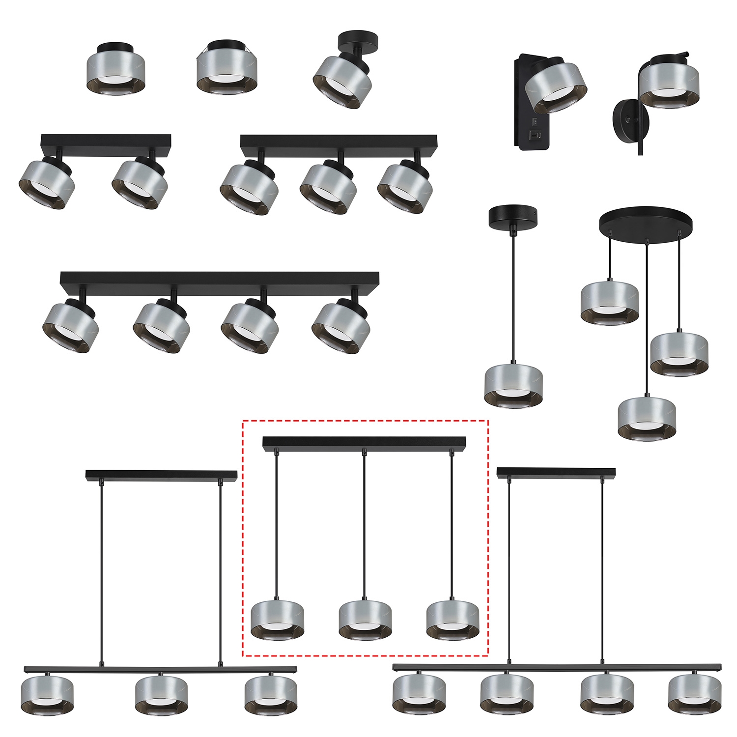 Brilagi - Suspension sur câble AURA LUX 3xGX53/30W/230V noir/fumé caractérise un design agréable et fonctionnel.  Une ampoule à culot GX53 convient pour ce luminaire. Ici, vous pouvez acheter d'autres ampoules à des prix avantageux. Vous aurez un ajout intéressant dans votre intérieur.
