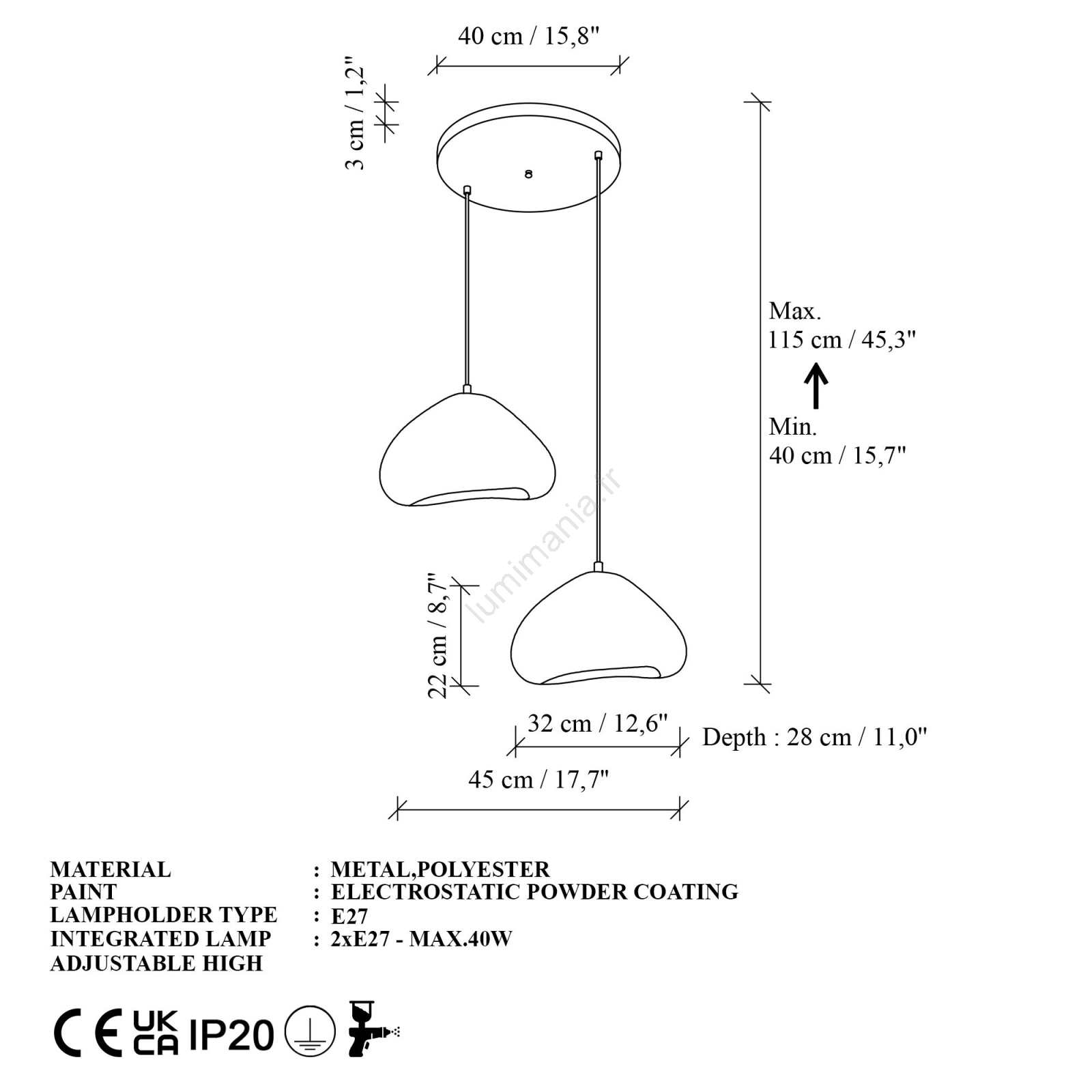 Brilagi - Suspension sur câble WABI SABI 2xE27/40W/230V Ø 45 cm blanc caractérise un design agréable et fonctionnel.  Une ampoule à culot E27 convient pour ce luminaire. Ici, vous pouvez acheter d'autres ampoules à des prix avantageux. Vous aurez un ajout intéressant dans votre intérieur.