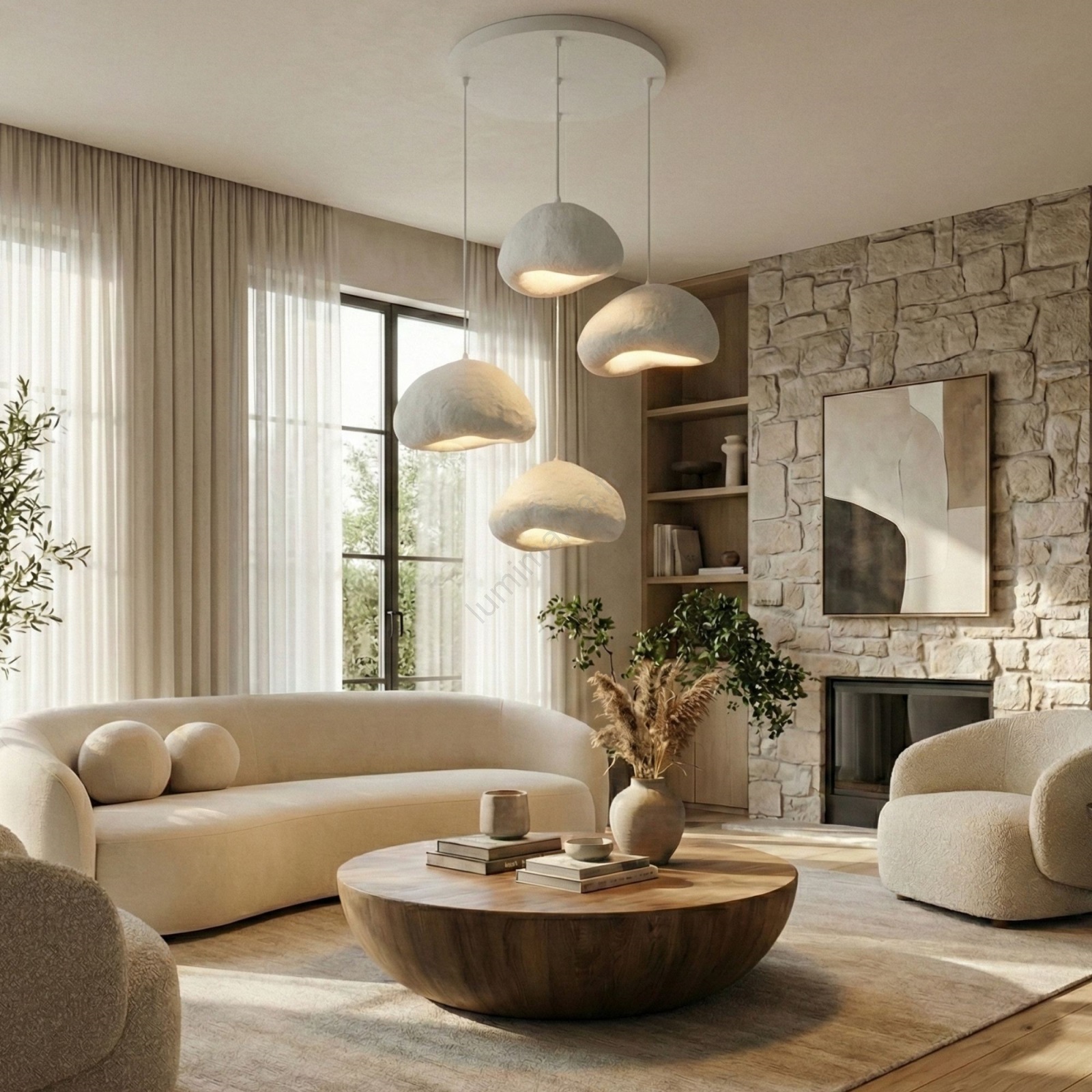Brilagi - Suspension sur câble WABI SABI 4xE27/40W/230V Ø 95 cm blanche caractérise un design agréable et fonctionnel.  Une ampoule à culot E27 convient pour ce luminaire. Ici, vous pouvez acheter d'autres ampoules à des prix avantageux. Vous aurez un ajout intéressant dans votre intérieur.