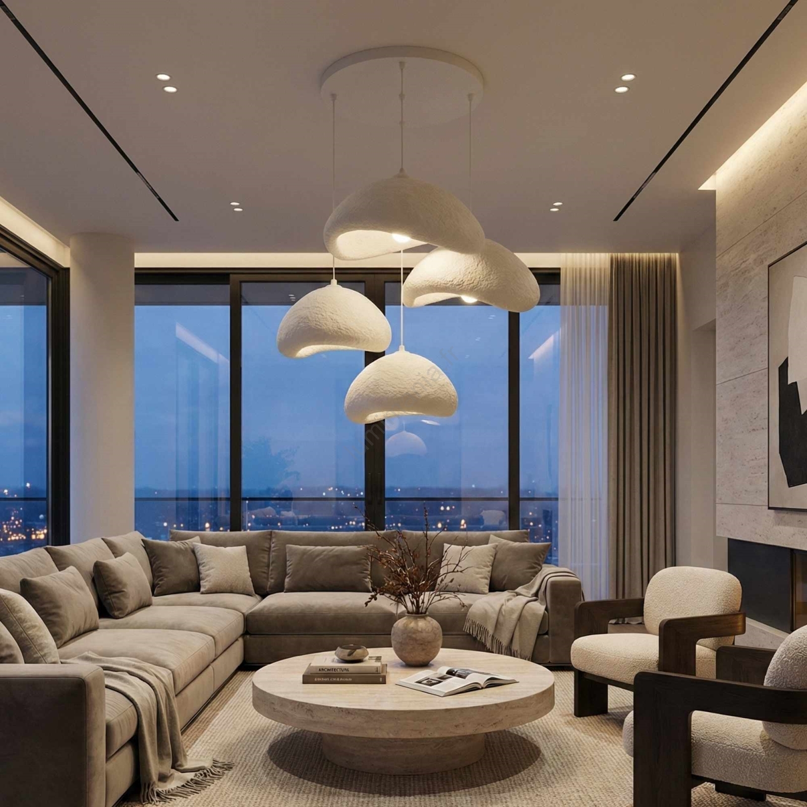 Brilagi - Suspension sur câble WABI SABI 4xE27/40W/230V Ø 90 cm blanche caractérise un design agréable et fonctionnel.  Une ampoule à culot E27 convient pour ce luminaire. Ici, vous pouvez acheter d'autres ampoules à des prix avantageux. Vous aurez un ajout intéressant dans votre intérieur.
